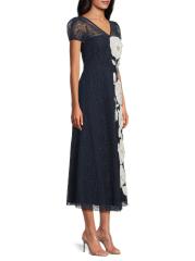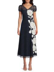 يتميز فستان Layla بطول الشاي من Kay Unger بأكمام قصيرة منفوخة وياقة على شكل حرف V وتنورة واسعة مع جيوب يدوية. تم وضع الزخارف البعدية والتطريز غير المتماثل ببراعة للحصول على لمسة نهائية مفصلة.