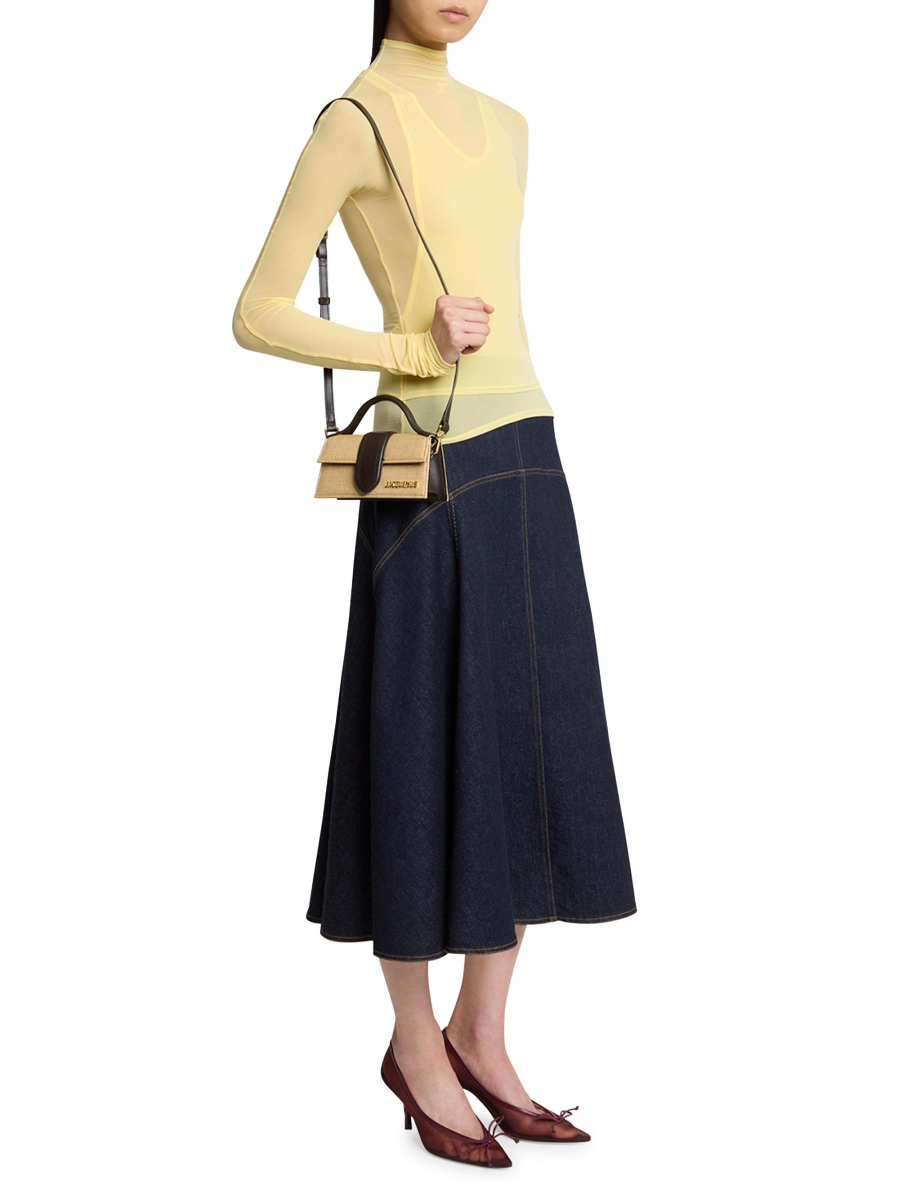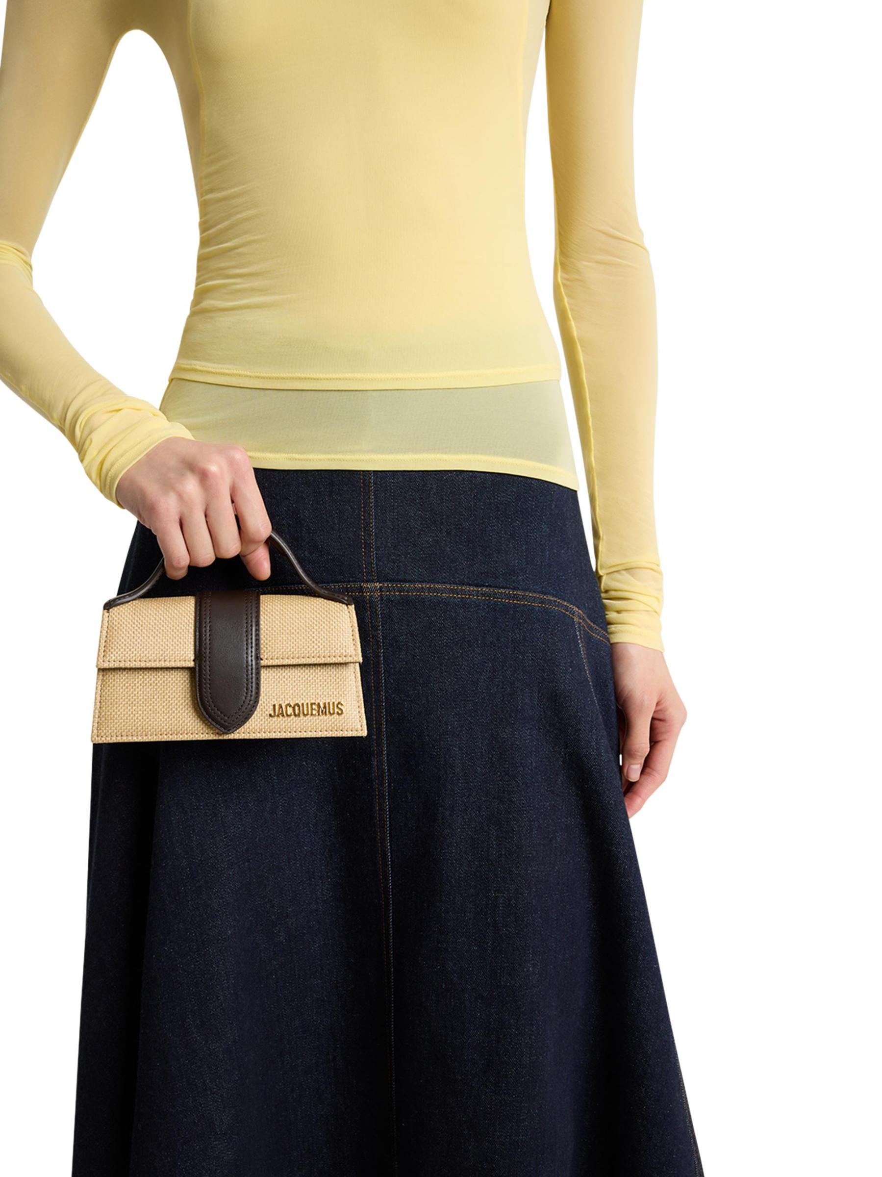 يمكن ارتداء حقيبة Le Bambino المنسوجة ذات المقبض العلوي من Jacquemus كمقبض علوي أو حقيبة كتف.