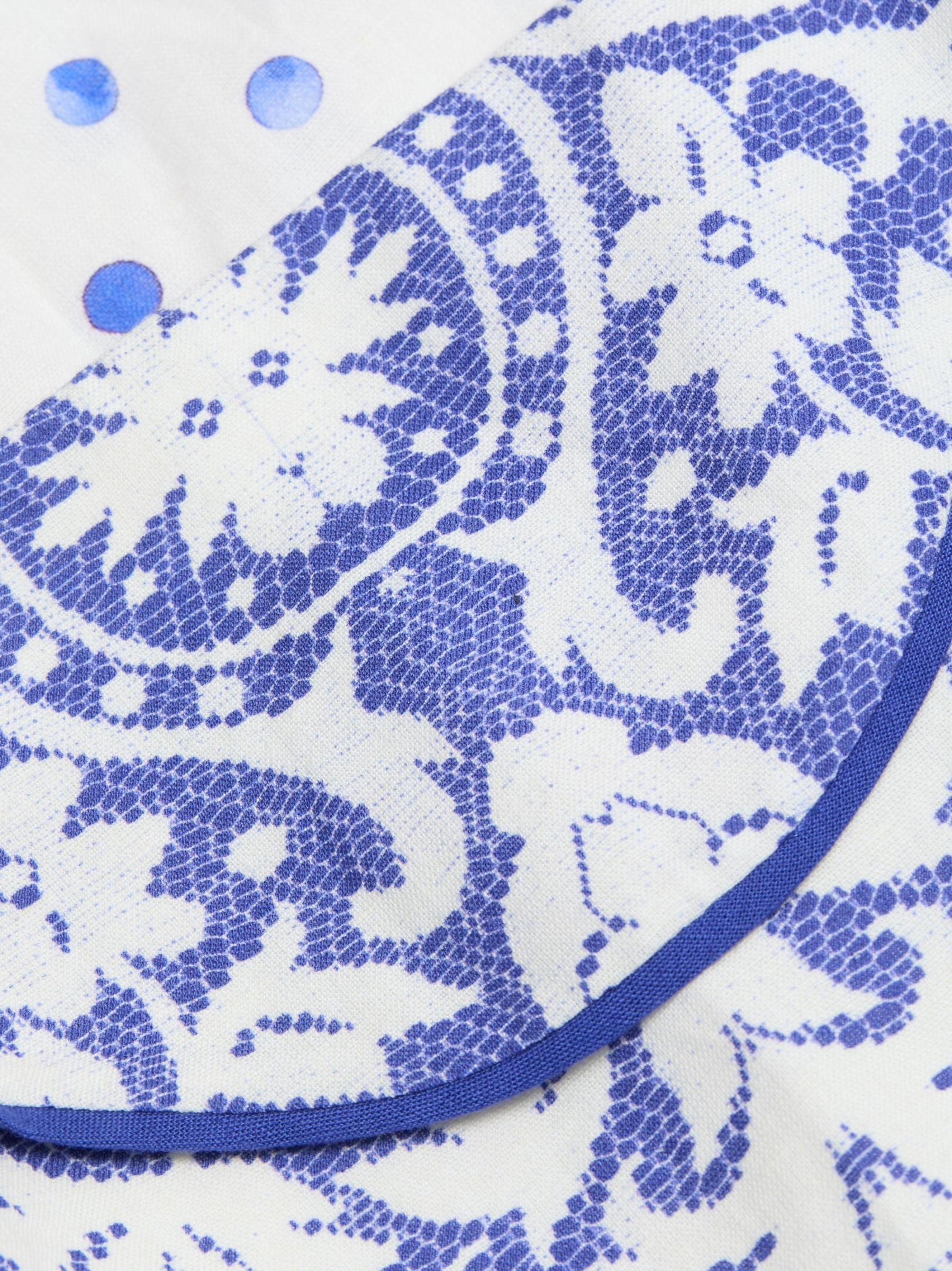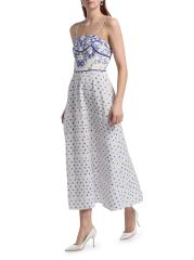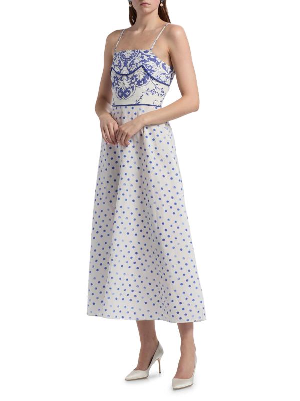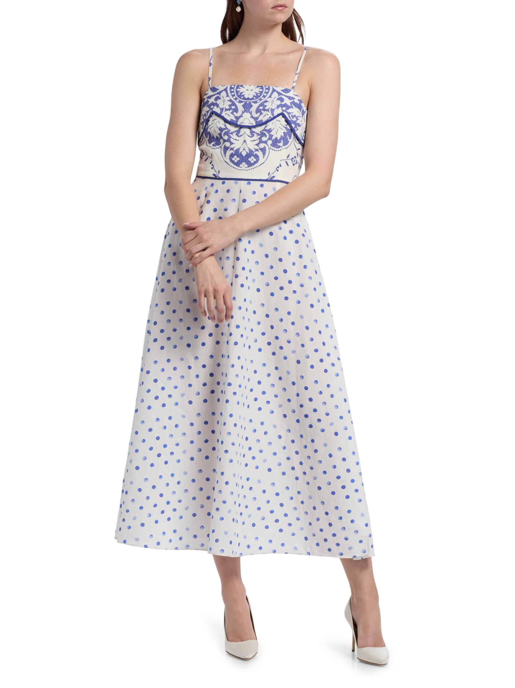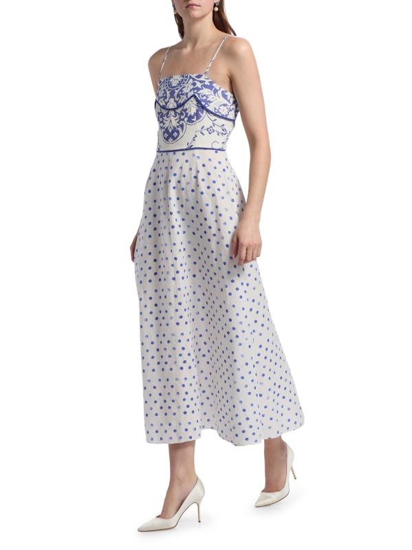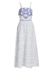 من مجموعة لو فلور. صُمم فستان Hattie A-line المتوسط من أستون ستوديو من مزيج الكتان والقطن بصدّار مطرّز وتنورة منقّطة.