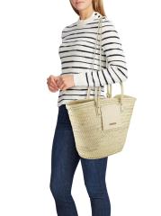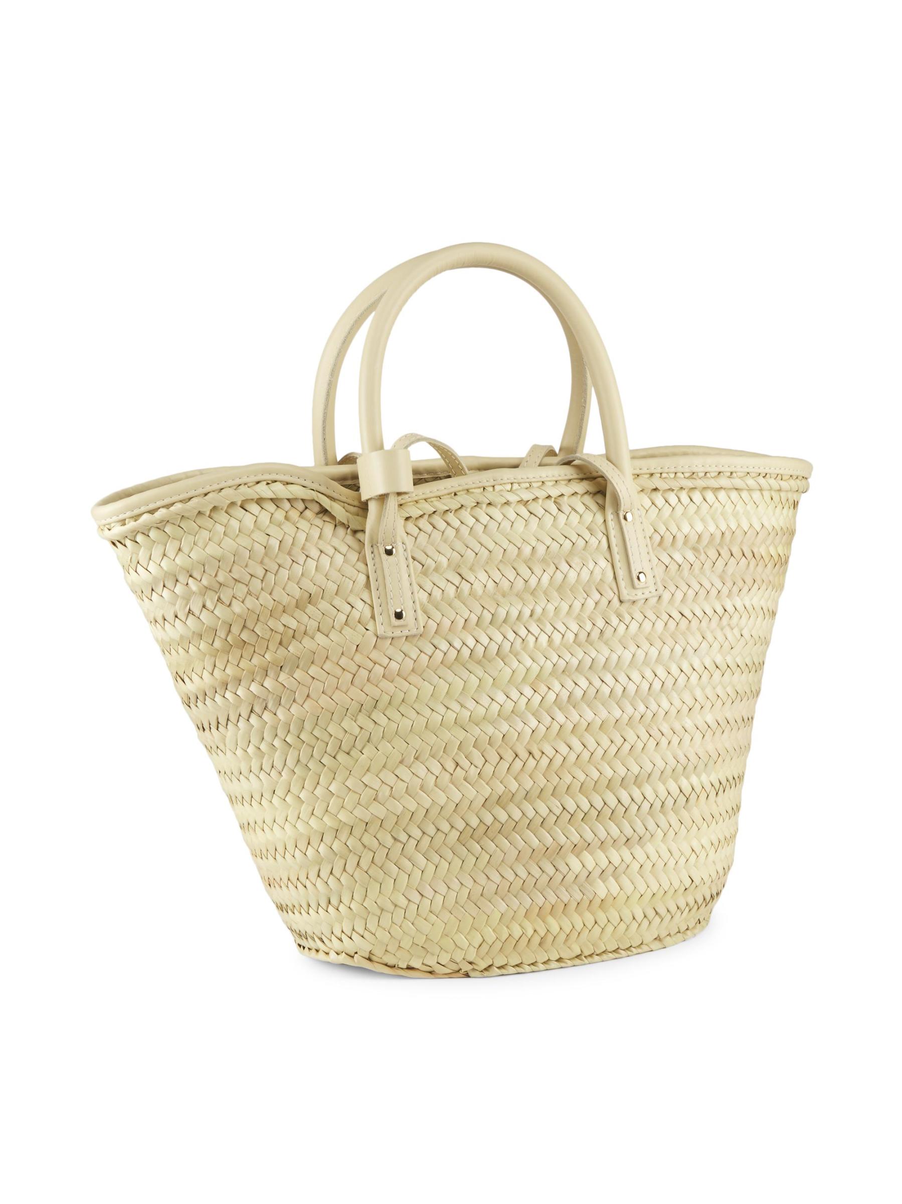 حقيبة Le Panier Soli من Jacquemus مصنوعة من القش المنسوج بتفاصيل جلدية ناعمة. صُنع هذا الطراز الشاطئي في إيطاليا، وتم تفصيله بحروف الشعار باللون الذهبي.مقبضان علويّان حزامان للكتف الجزء الخارجي: جيب واحد منزلق إغلاق بمشبك 100٪ من أوراق النخيل الزخرفة: جلد صُنع في إيطاليا