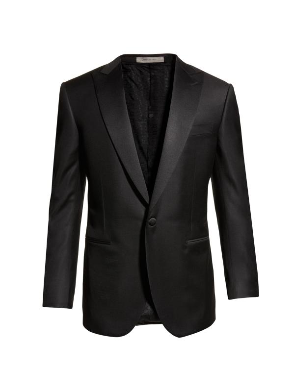 يُضفي هذا التوكسيدو من كورنيلياني، المصنوع من الصوف الفاخر، مظهرًا راقيًا. يتميّز الجاكيت المصمّم بطيات علوية وجيوب جانبية مزوّدة بزر وحيد للإغلاق، في حين تم تصميم البنطال المجعد من الأمام للحصول على شكل مدبب على شكل ساق. مصنوع من الصوف بنسبة 100%. تنظيف جاف. صُنع في إيطاليا.