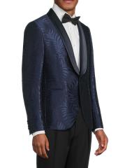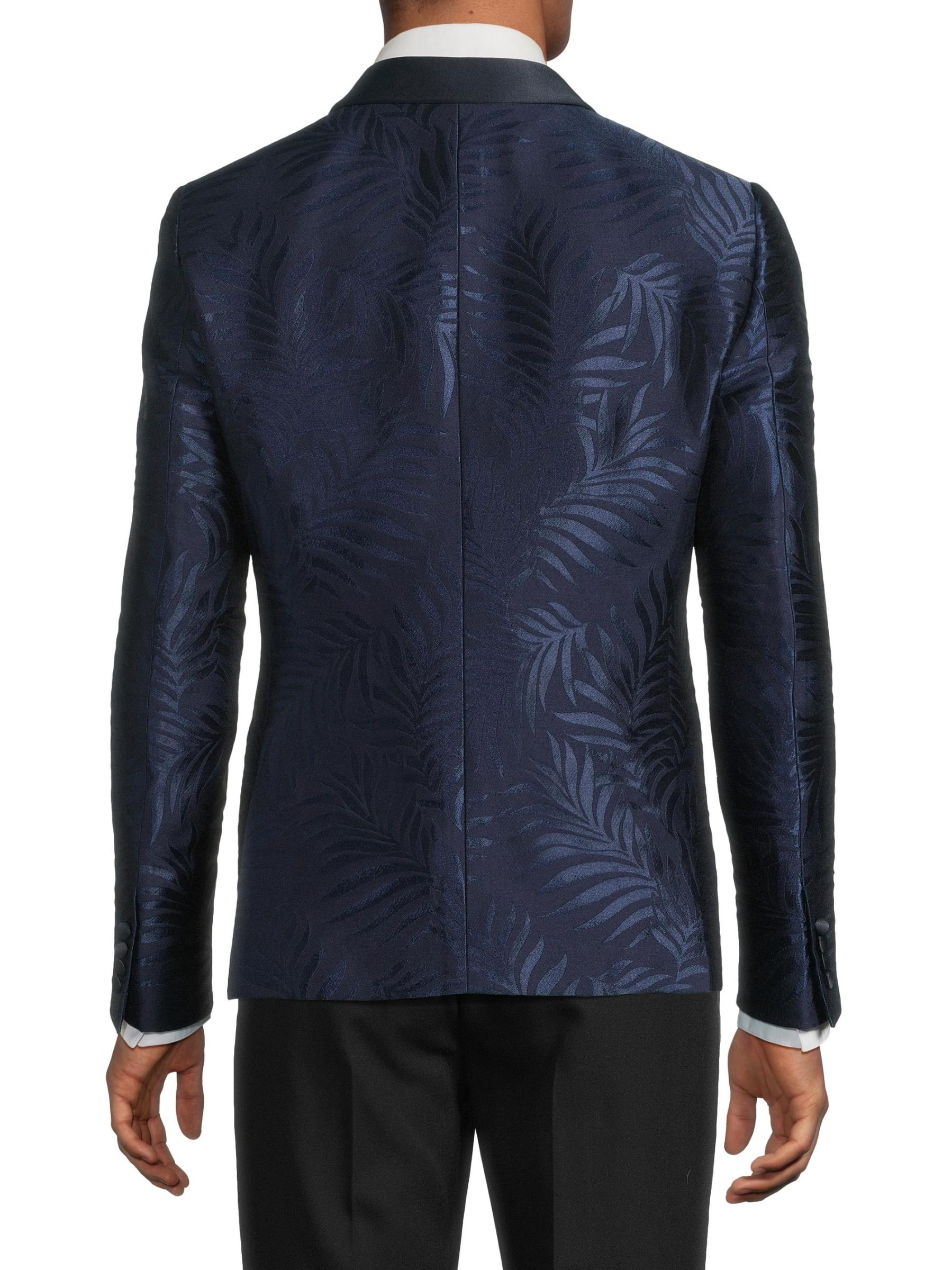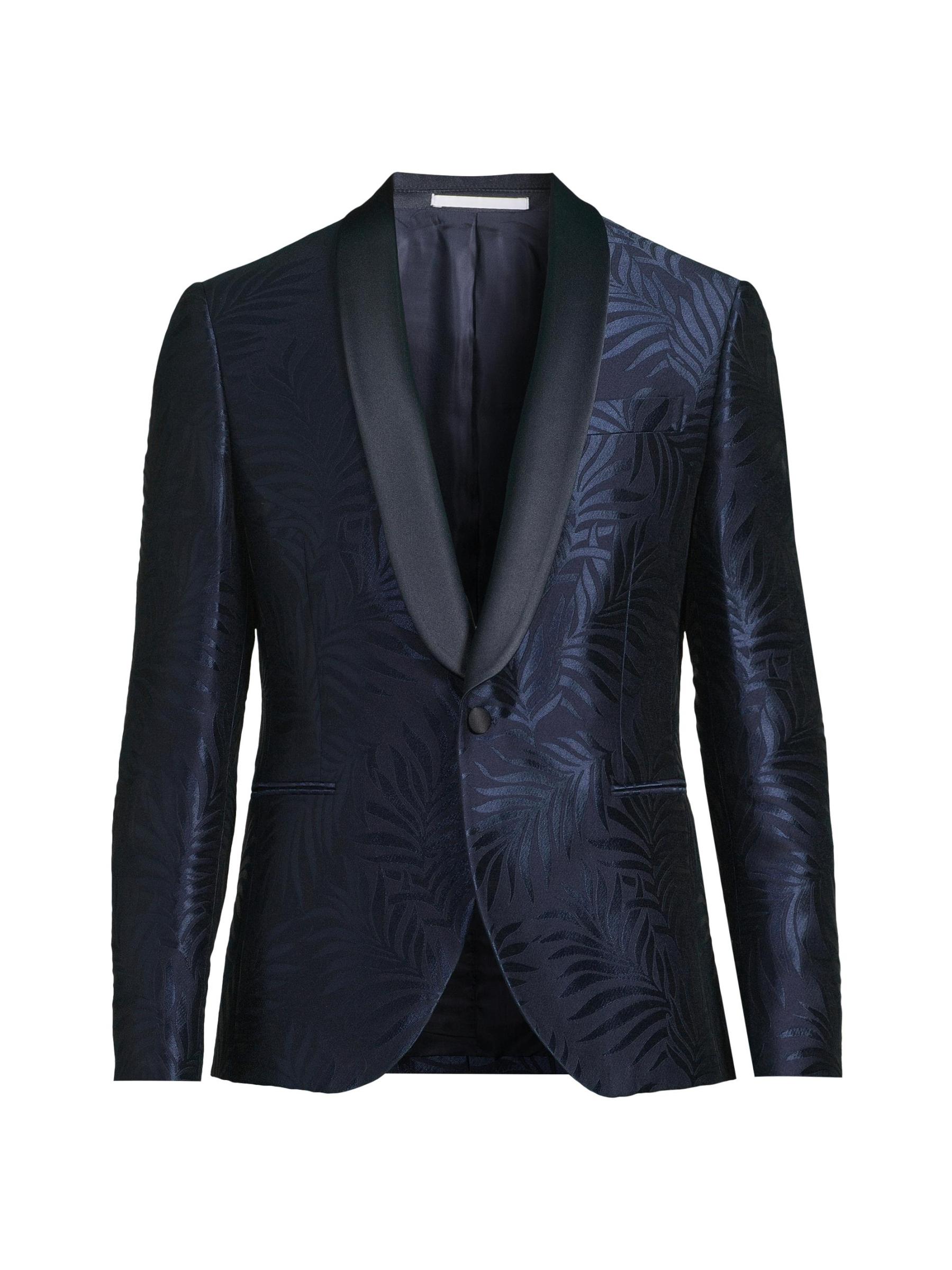 جاكيت عشاء من الساتان بطبعة أوراق الشجر
