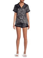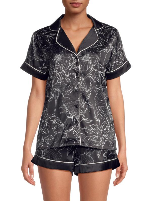 صُممت مجموعة بيجامة Averie Sleep بقصة مريحة ومصنوعة من الساتان الناعم الزبداني، وتتضمن قميصًا بأكمام قصيرة بأزرار وشورت وحقيبة بيجامة من الساتان. 100% بوليستر. غسيل يدوي. مستوردة.