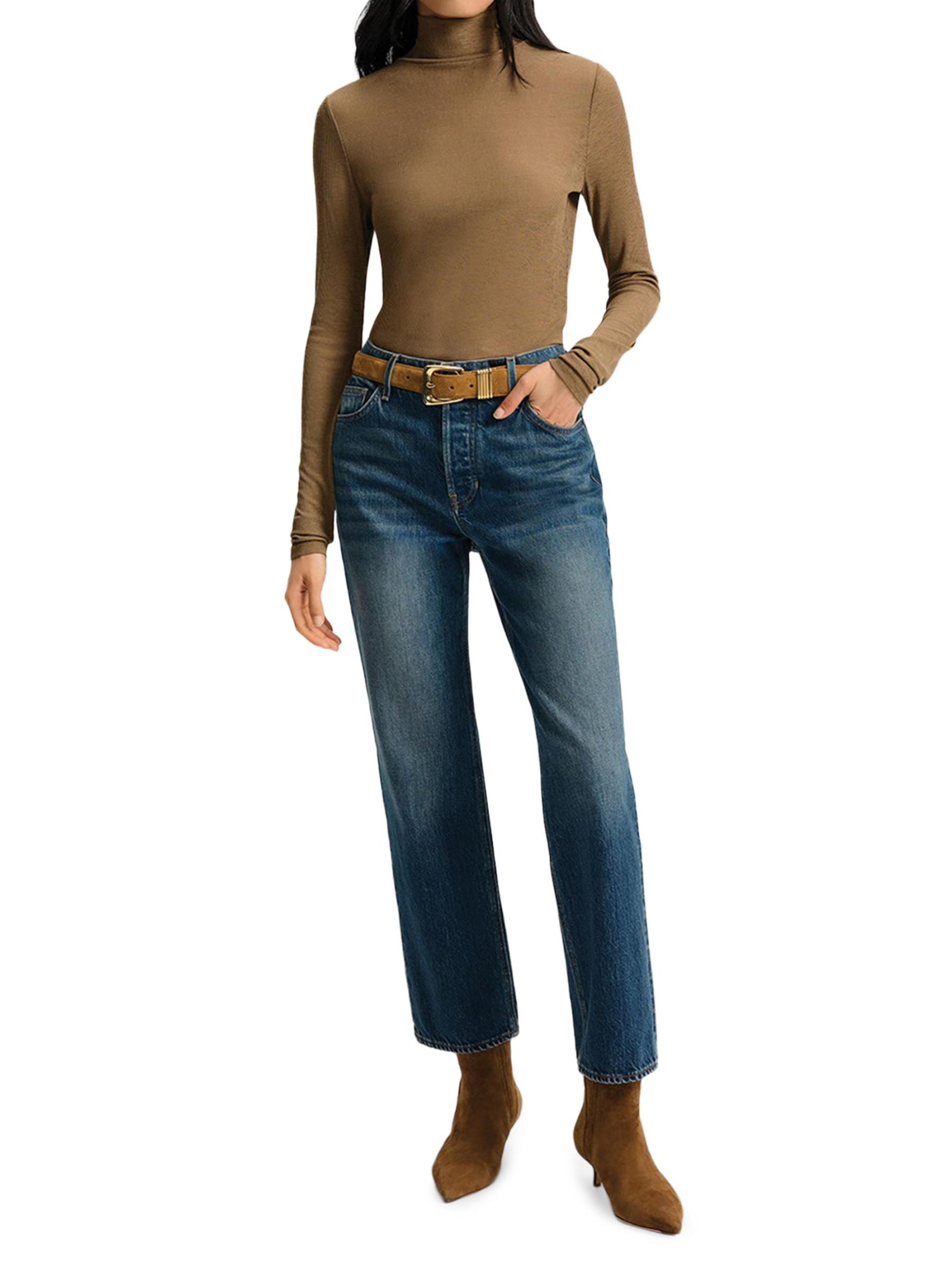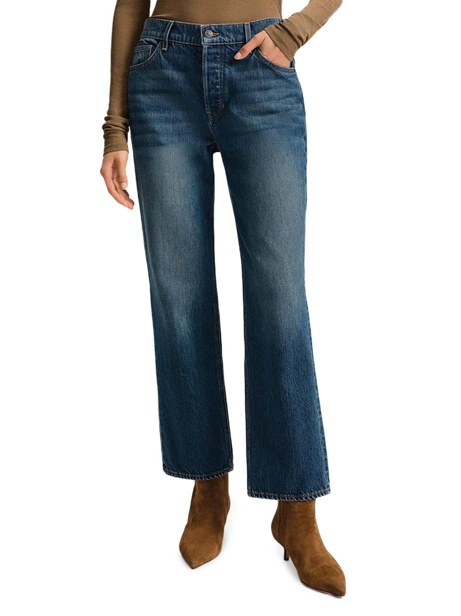 يتميز بنطال جينز Leah القابل للتمدد من Veronica Beard بمقاس مستقيم ومريح عند الورك والفخذ. يتضمن هذا النمط خصرًا متوسط الارتفاع وتصميمًا بخمسة جيوب وأرجل مستقيمة بحاشية بطول الكاحل.طراز بخمسة جيوب سحّاب، زر للإغلاق قطن/إيلاستين صُنع في الولايات المتحدة الأمريكية