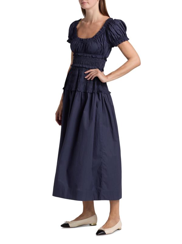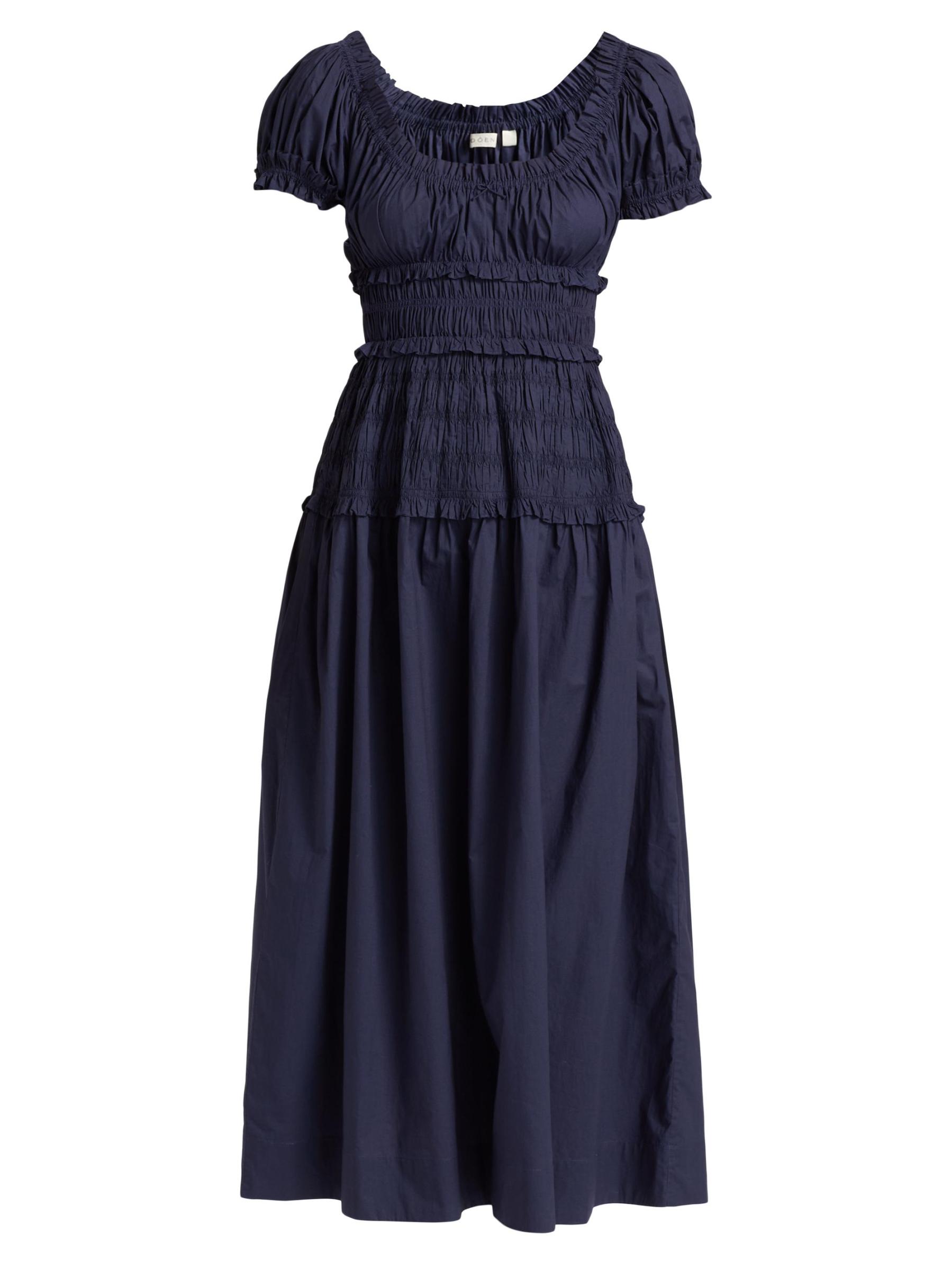 صُمم فستان Leanne midi هذا من DÔEN المصنوع من القطن برقبة دائرية مطاطية وتفاصيل مطرزة عند الخصر للحصول على صورة ظلية ضيقة.