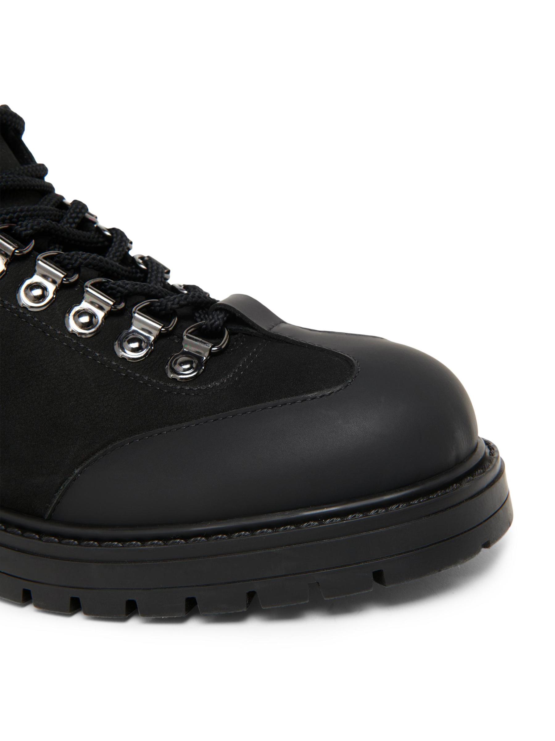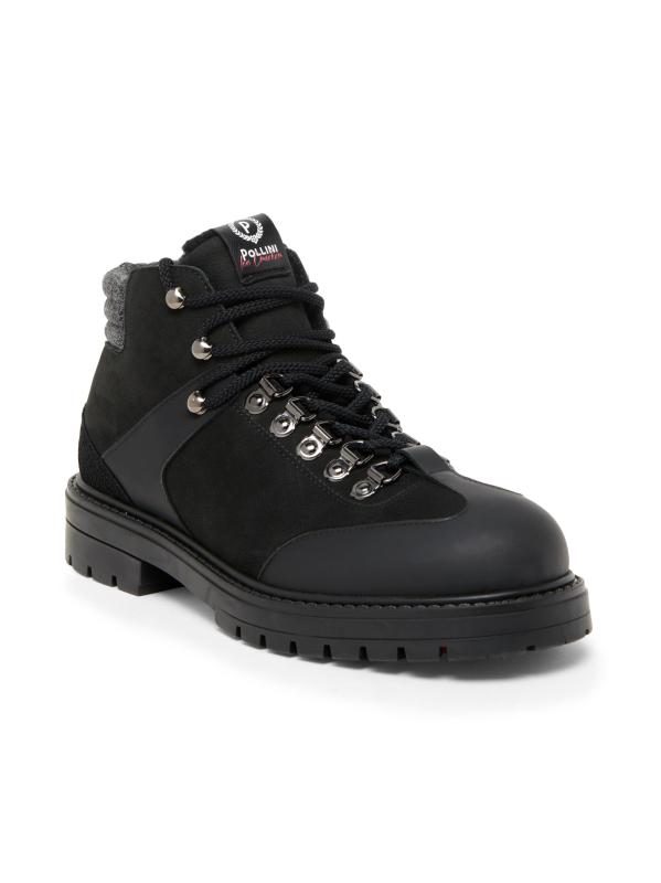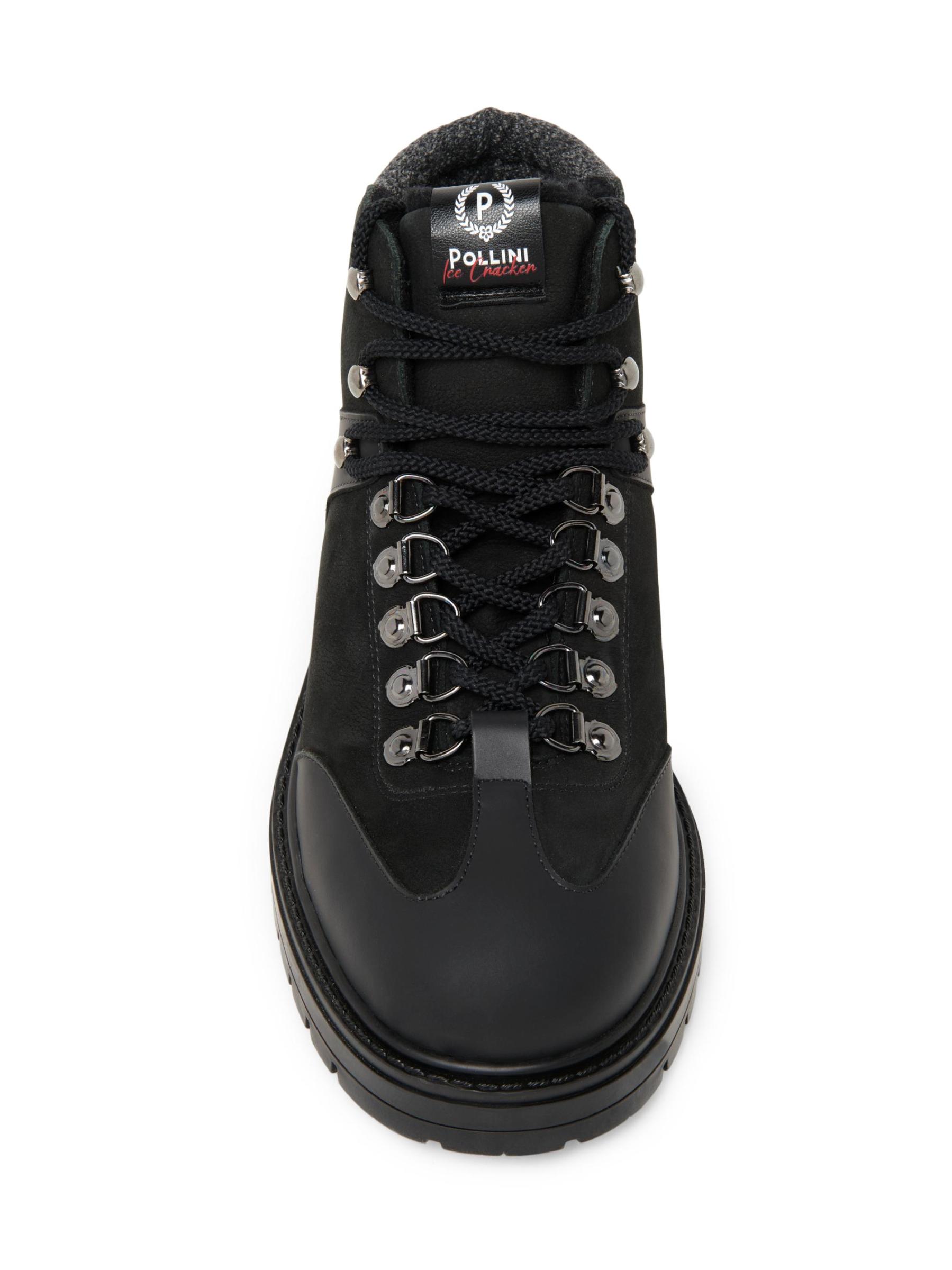 يتميز بوت الكاحل هذا من Pollini بجزء علوي من الجلد مع تفاصيل محبوكة عند الكعب. يوفر النعل المطاطي ورباط الحذاء مزيدًا من الراحة لهذا الزوج.
