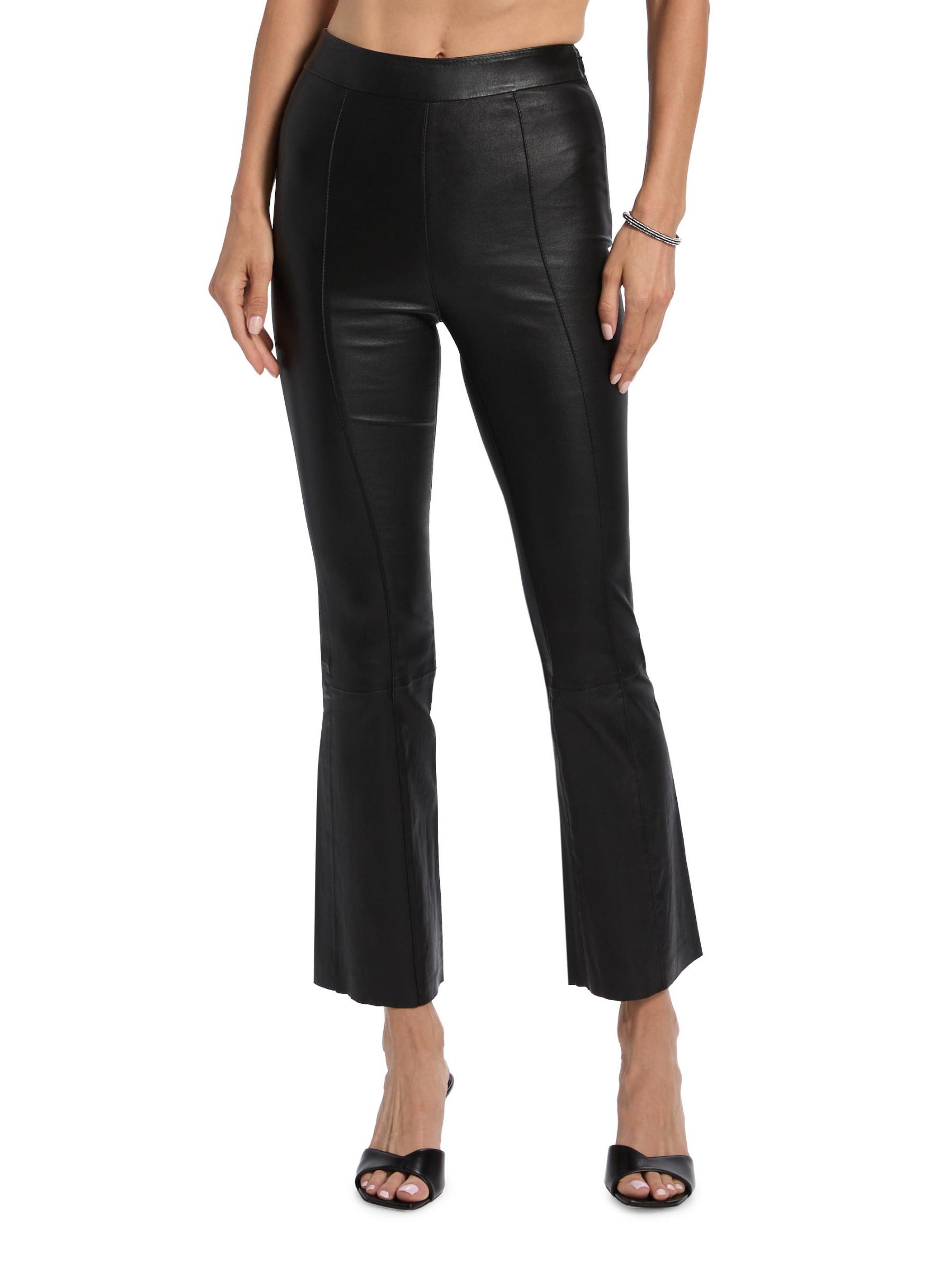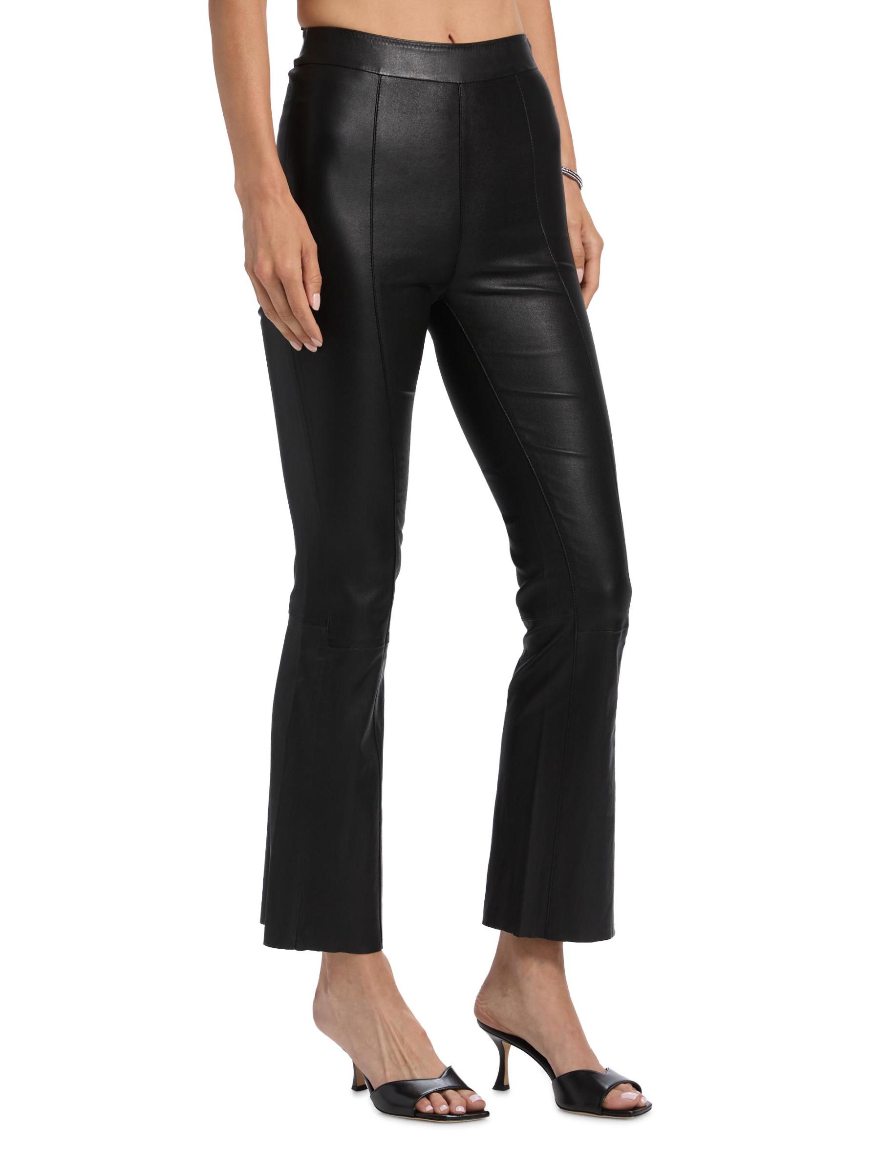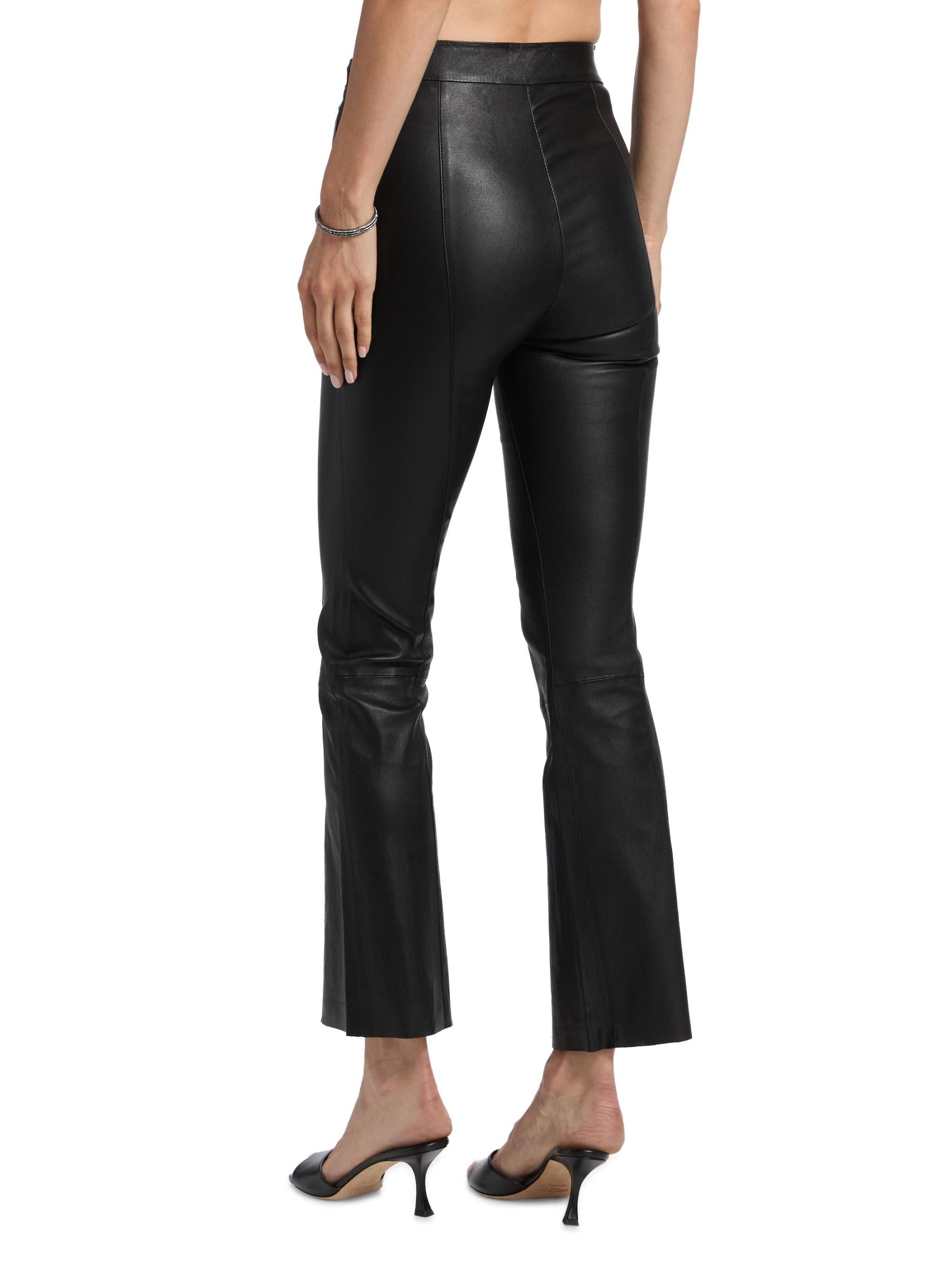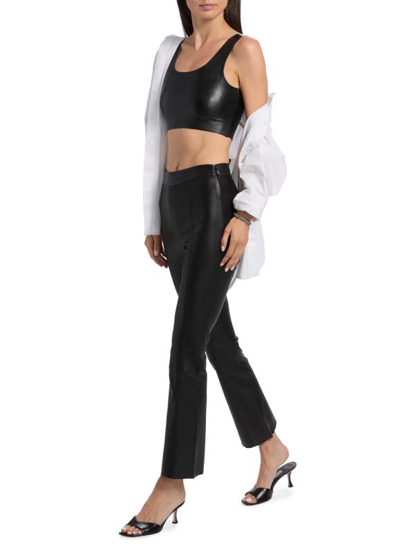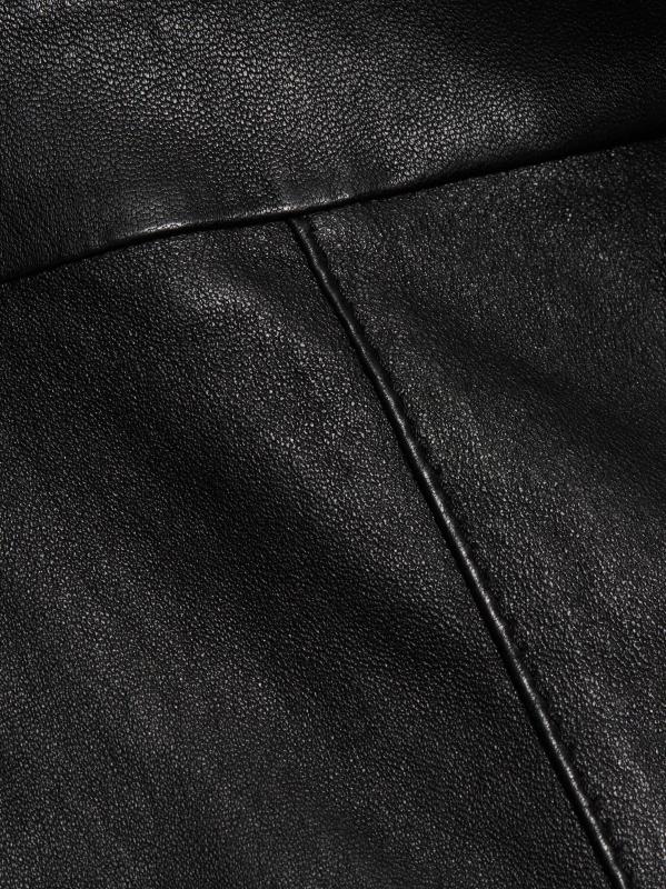 سراويل SPRWMN القصيرة عالية الارتفاع مصنوعة من الجلد ومزينة بشكل واسع.خصر مطوق إغلاق بسحّاب جانبي مصنوع من الجلد بنسبة 100% التنظيف الجاف من قبل أخصائي الجلد مستورد من قماش فرنسي