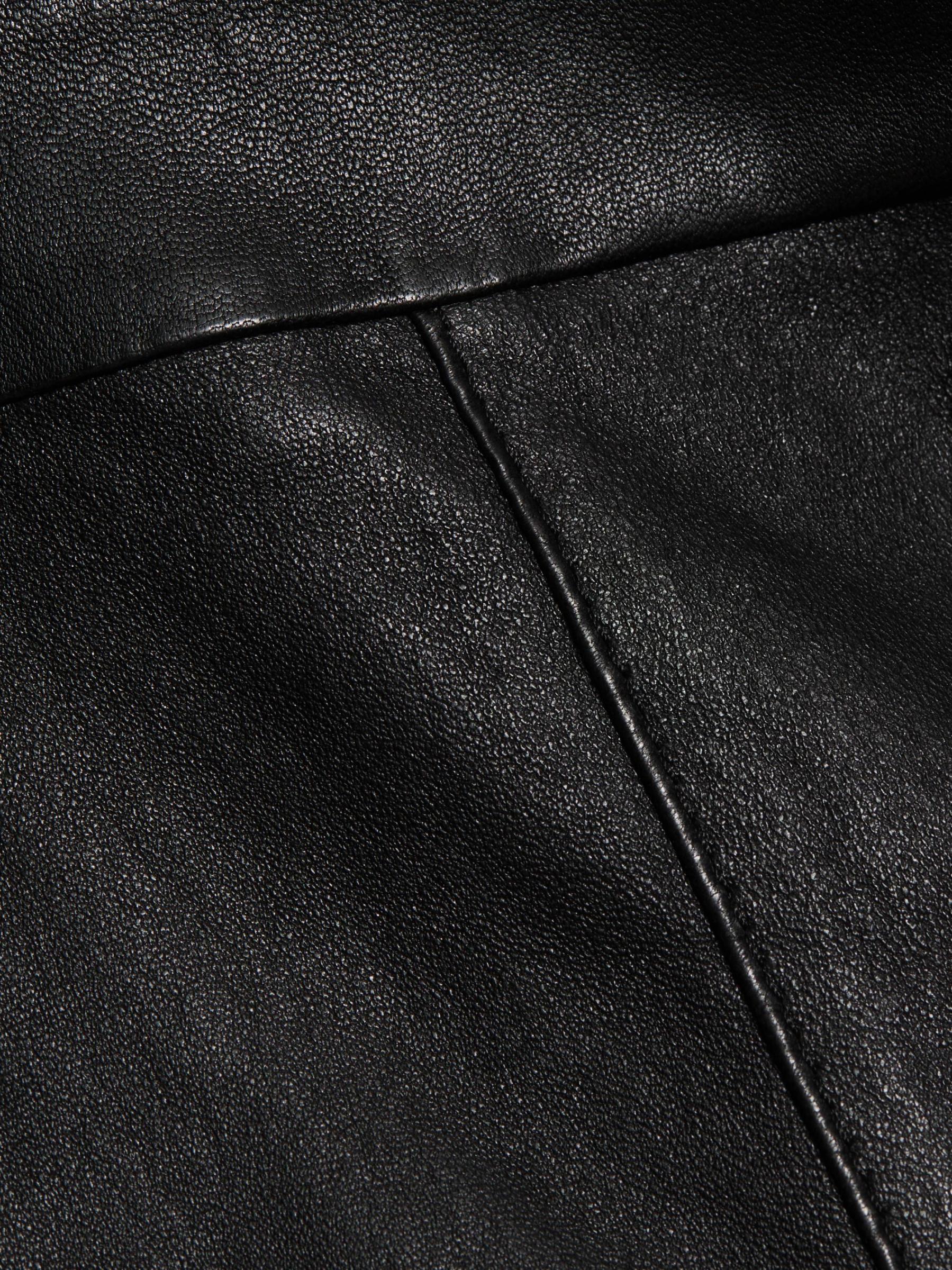 سراويل SPRWMN القصيرة عالية الارتفاع مصنوعة من الجلد ومزينة بشكل واسع.