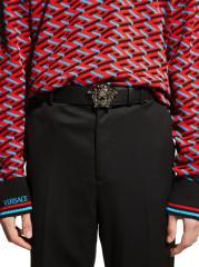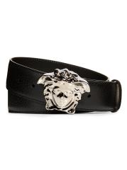 يُجسّد حزام فيرساتشي المصنوع من الجلد شعار ميدوسا المميز للعلامة التجارية عند الإغلاق بإبزيم فضي.