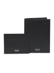 حامل جواز سفر جلدي ومجموعة حافظة بطاقات