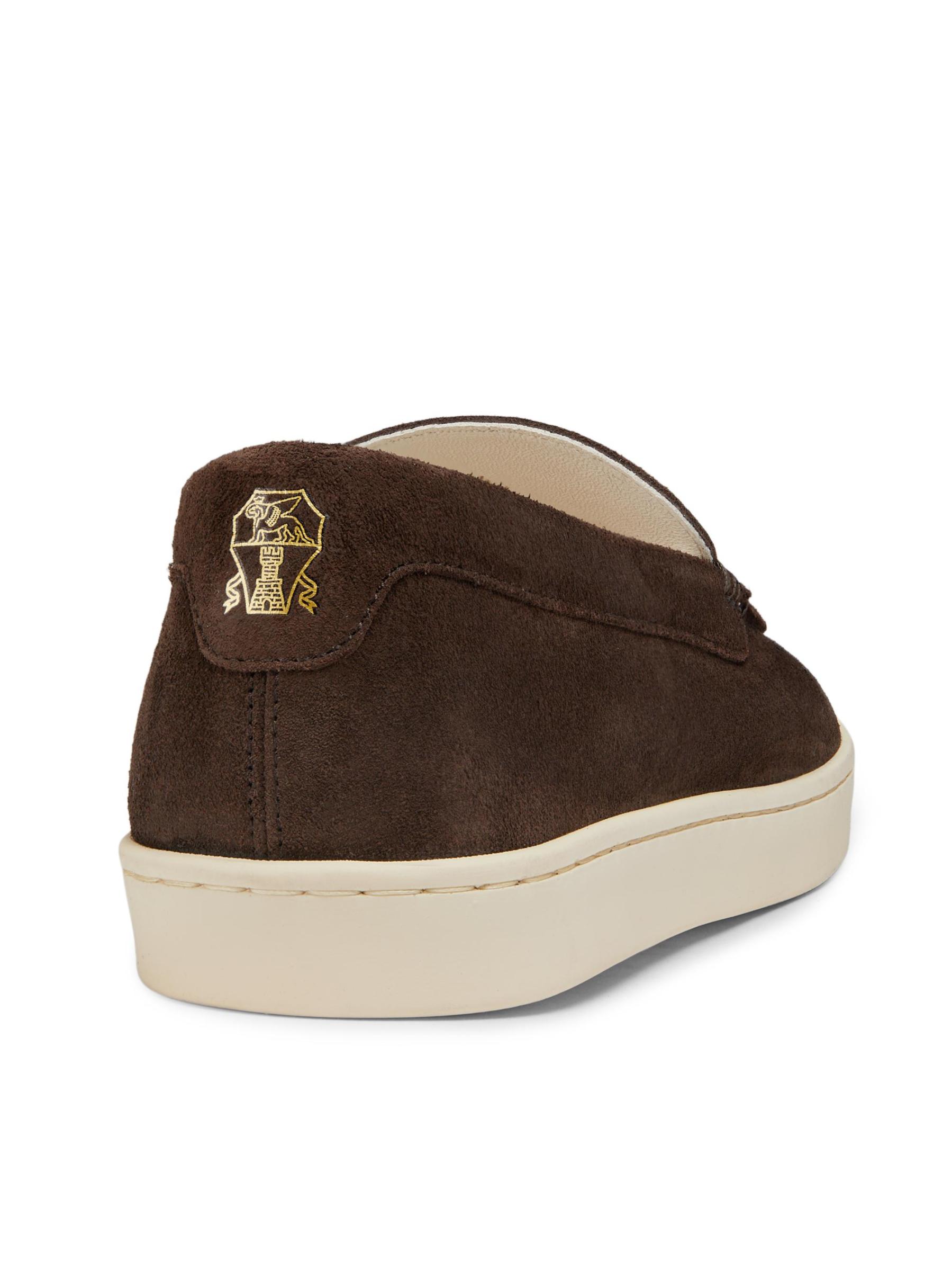 تُشكِّل التفاصيل المُحاكة أصابع القدم في هذه الأحذية الجلدية سهلة الارتداء من Brunello Cucinelli.