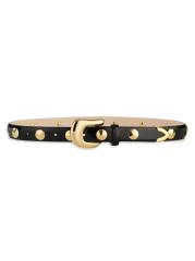 هذا الحزام من Aureum Collective مصنوع من الجلد ويتميز بأزرار معدنية ذهبية اللون.