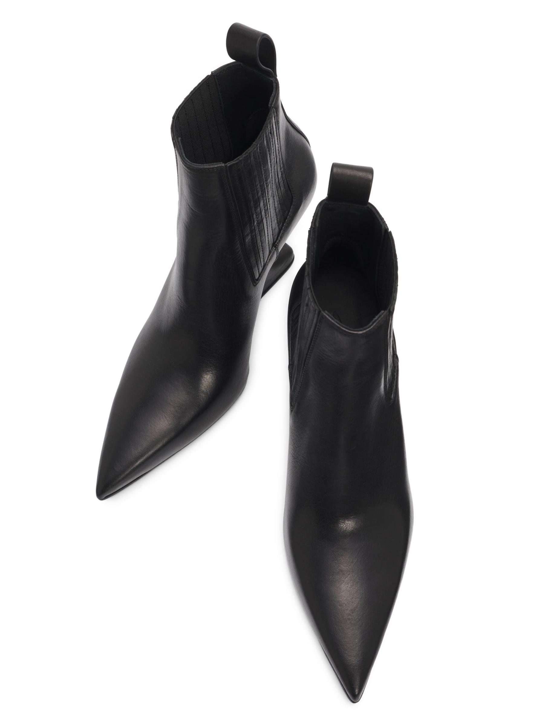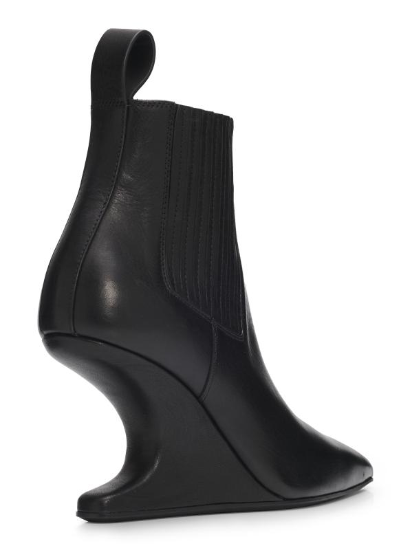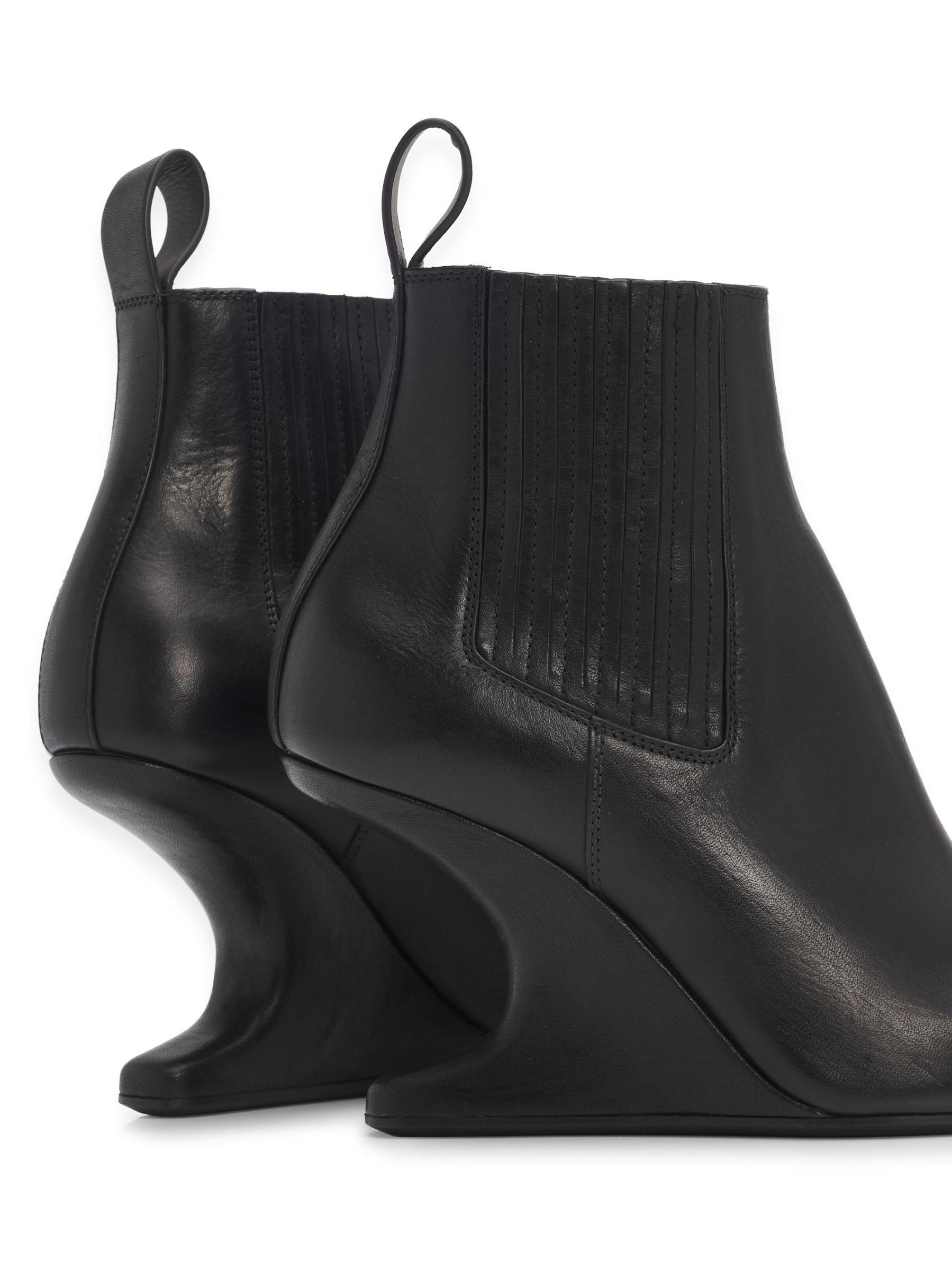 يتميز حذاء Rick Owens المصنوع من الجلد الإيطالي الأنيق بمقدمة مدببة وقماش مطاطي جانبي وكعب مميز.