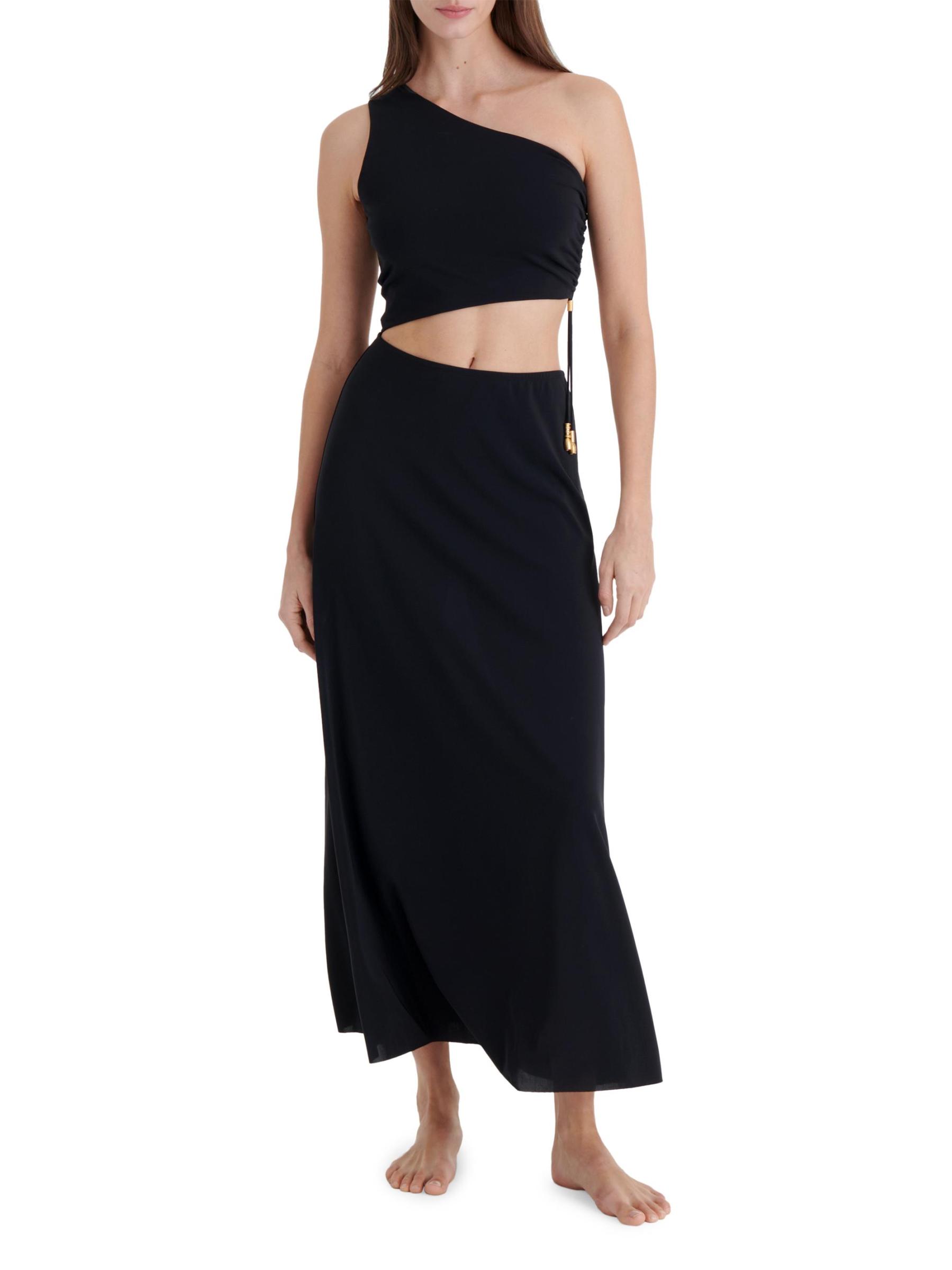 فستان ماكسي كلاسيكي غير متماثل بكتف واحد