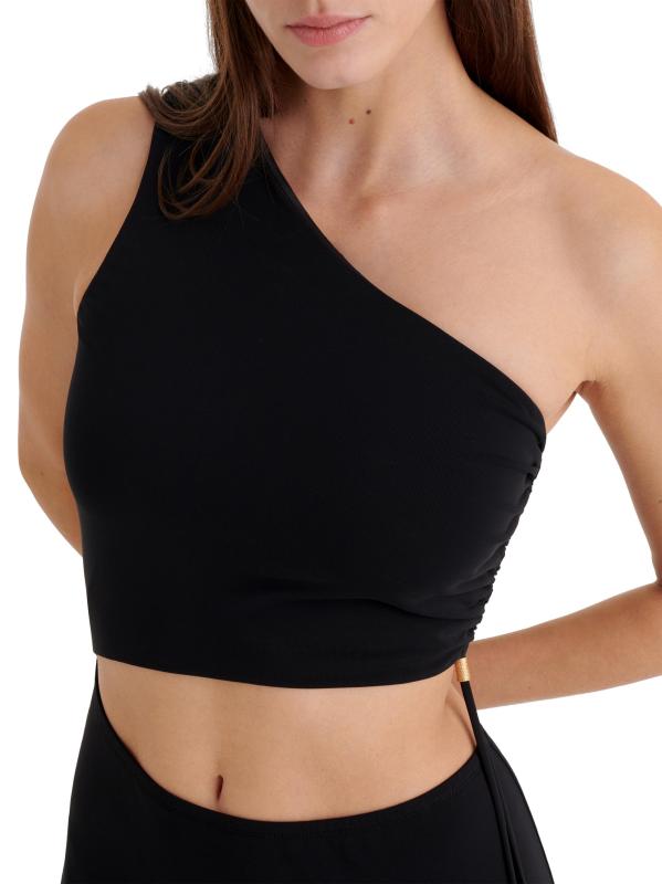 يتميز هذا الفستان الطويل من Légende بكتف واحد من ERES بقصّة غير متماثلة وجانب مكشكش مع أربطة مزيّنة بالخرز.