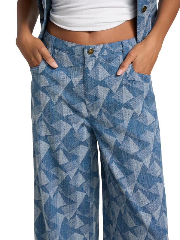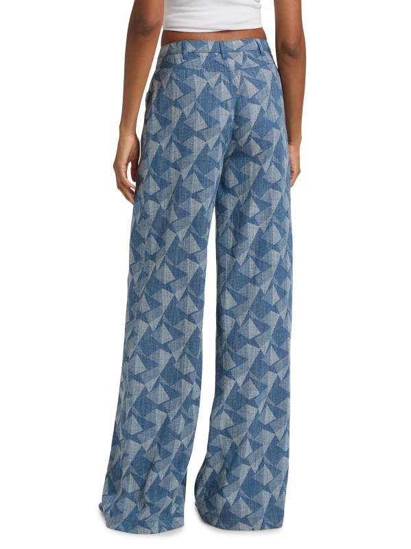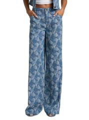 بنطال جينز ليو بتصميم هندسي واسع الساق