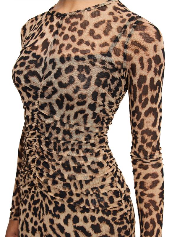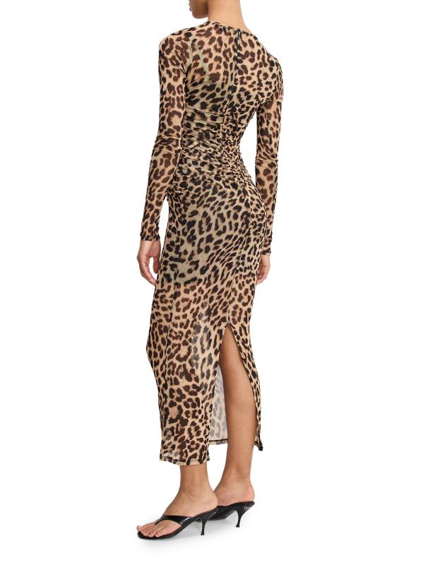 يتميّز هذا الفستان الطويل من Good American بنقشة جلد الفهد الجريئة، وهو مصمّم بشكل مثالي على شكل جسم أنيق. يتميّز هذا النمط بجوانب مكشكشة وأربطة في المنتصف وتنورة شبه مبطنة وأكمام طويلة.