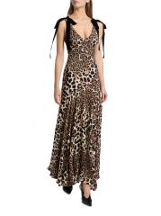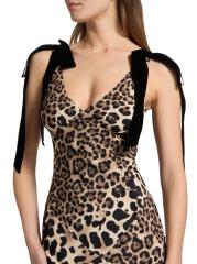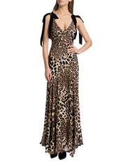 فستان من الحرير مزين بفيونكة بنقشة جلد الفهد