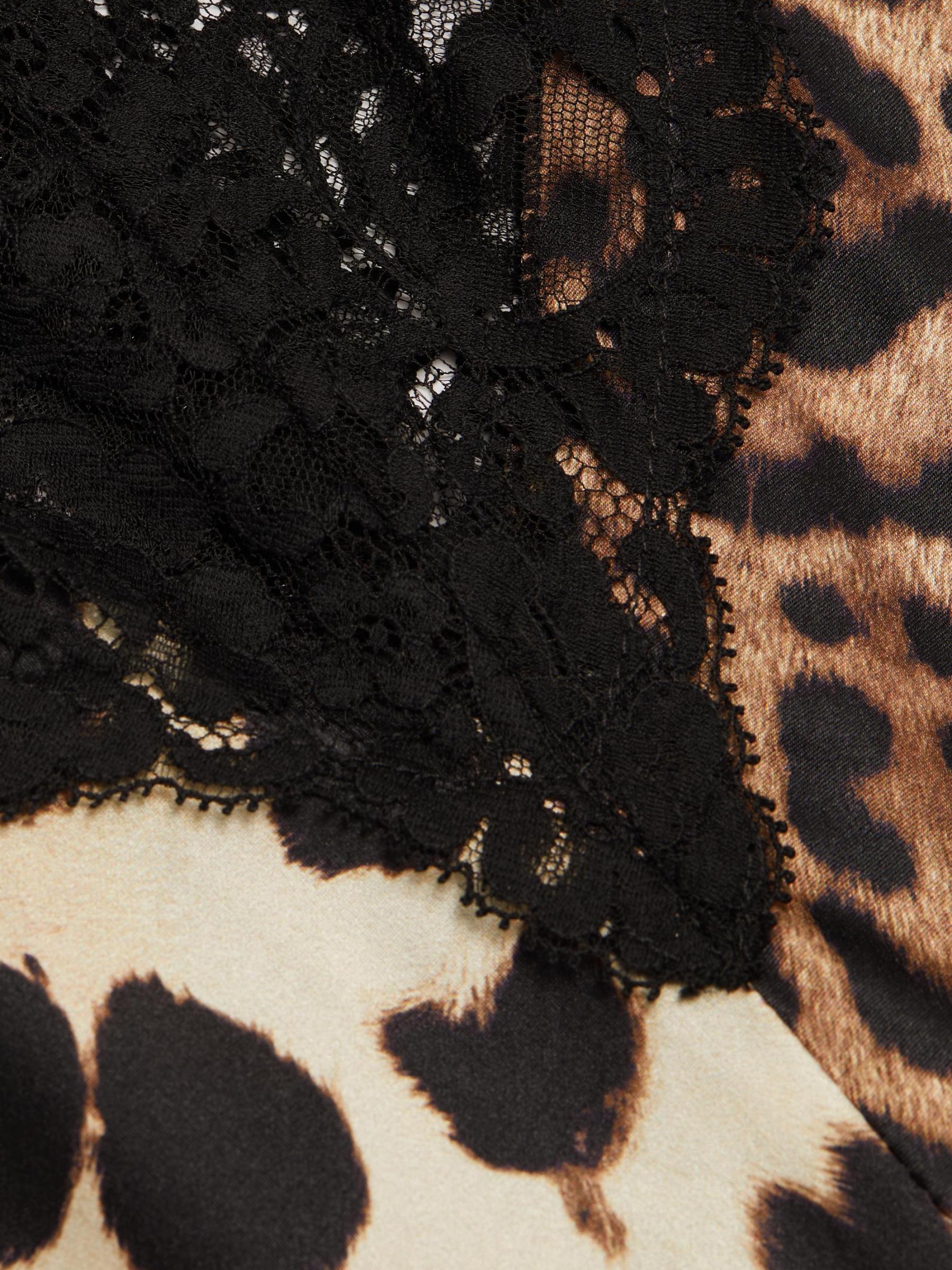 فستان ماكسي من الحرير مزين بالدانتيل بنقشة جلد الفهد