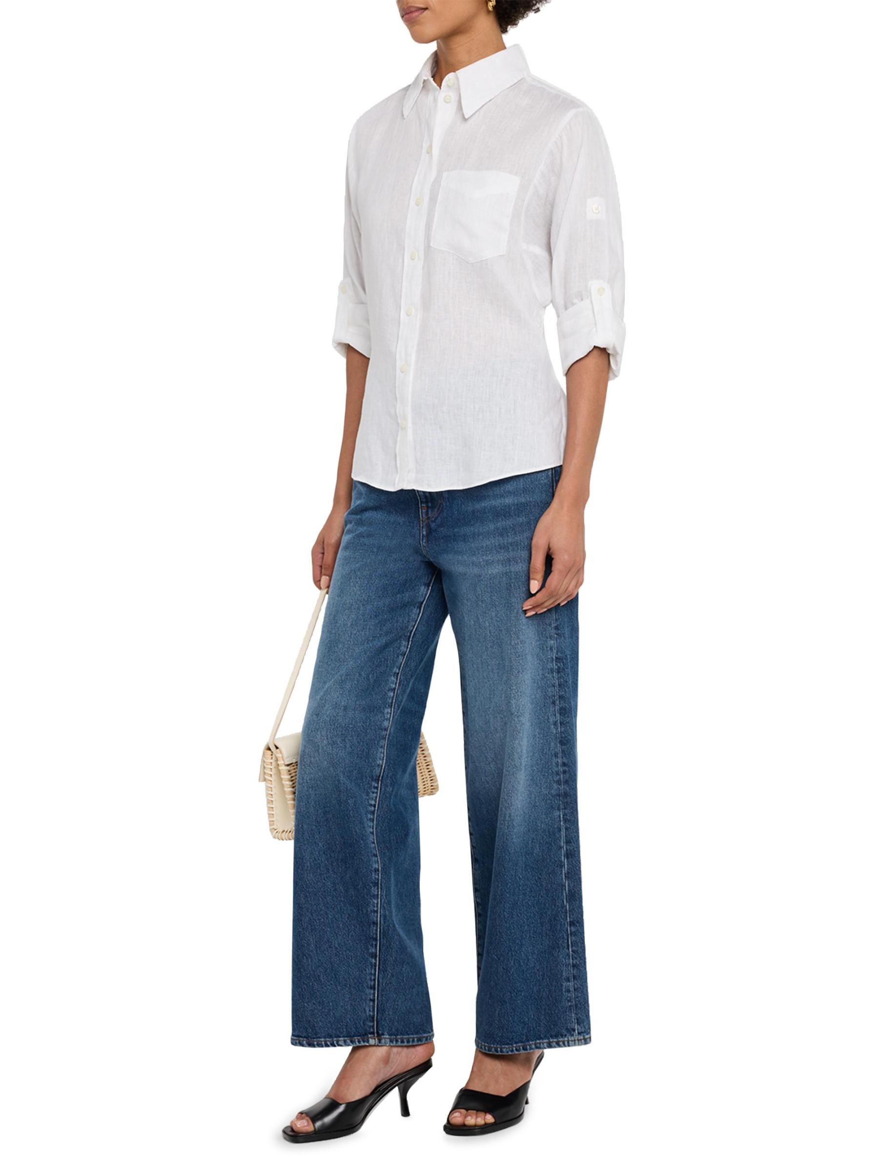 تضفي ربطة العنق الخلفية شكلاً على بلوزة Leora من Reiss Atelier. يتميز هذا الطراز المصنوع من الكتان بأكمام طويلة قابلة للطي.