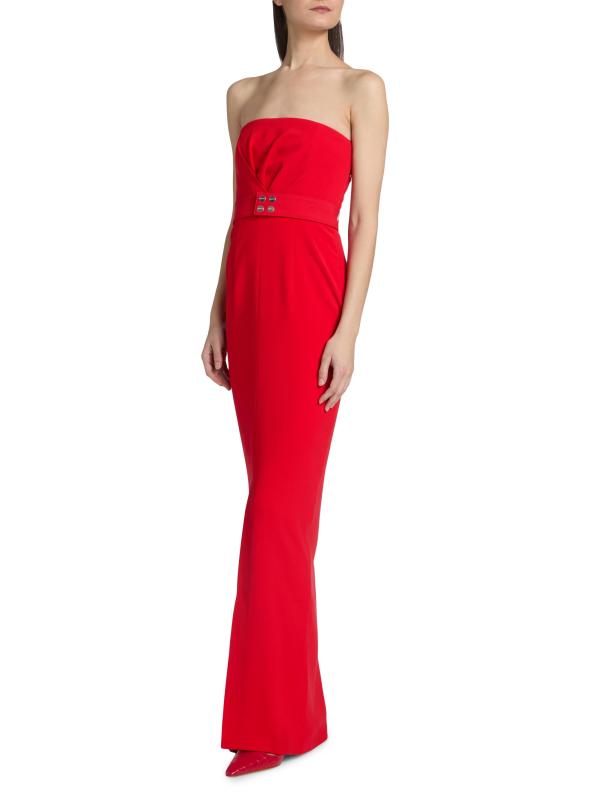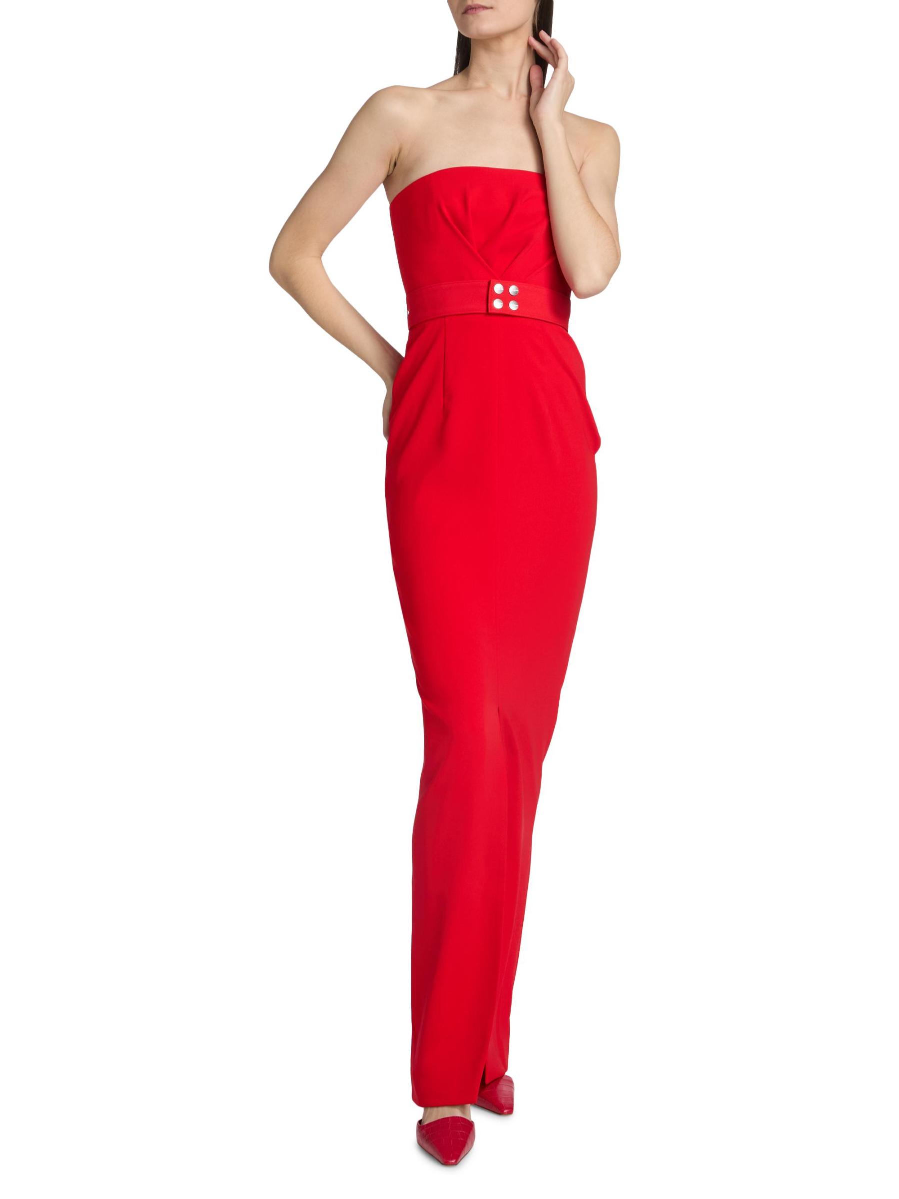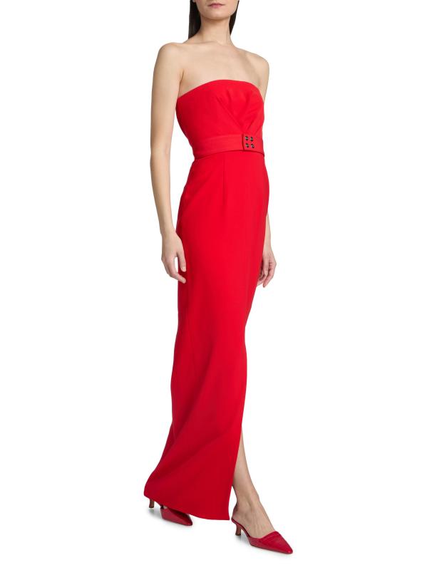 من مجموعة لايتس أون. صُمم فستان Aeta هذا من 16Arlington، والمصنوع من الكريب، في شكل عمودي ويتميز بتصميم بدون حمالات وتفاصيل حزام التثبيت وشق أمامي.