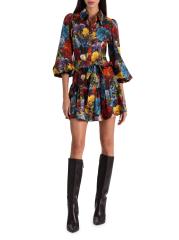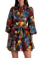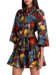 يتميّز فستان Lily shirt القصير من Alice + Olivia بنقشة زهور نابضة بالحياة ومصنوع من القطن القابل للتمدد، وذلك بتصميم منسدل عند الخصر.