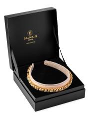 إصدار محدود. تم تصميم طوق الرأس هذا المصنوع من جلد نابا مع إضافة إضافية لسلسلة مطلية بالذهب.صفيحة من الجلد/الذهب عيار 18 قيراطًا تنظيف البقع مستوردة