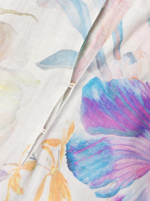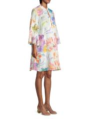 يتميز فستان لينو القصير بنسبة 120% المصنوع من الكتان الفاخر بتصميم قصير مستوحى من الكيمونو وأكمام طويلة واسعة. تم الانتهاء من هذا الطراز بإغلاق بحلقة أمامية وطباعة زهرية.