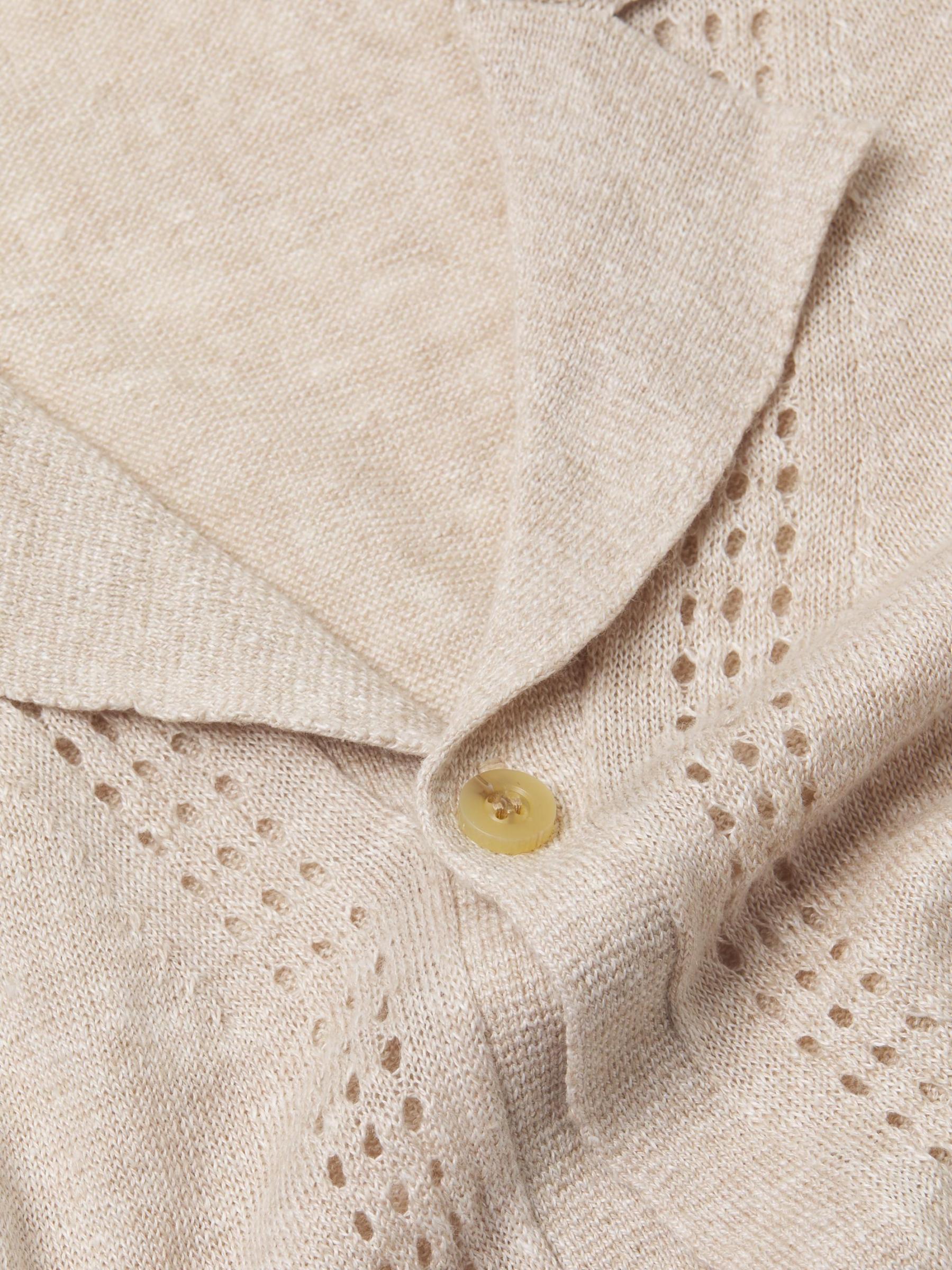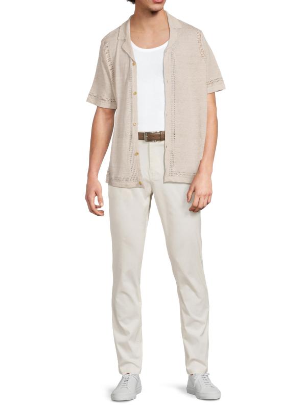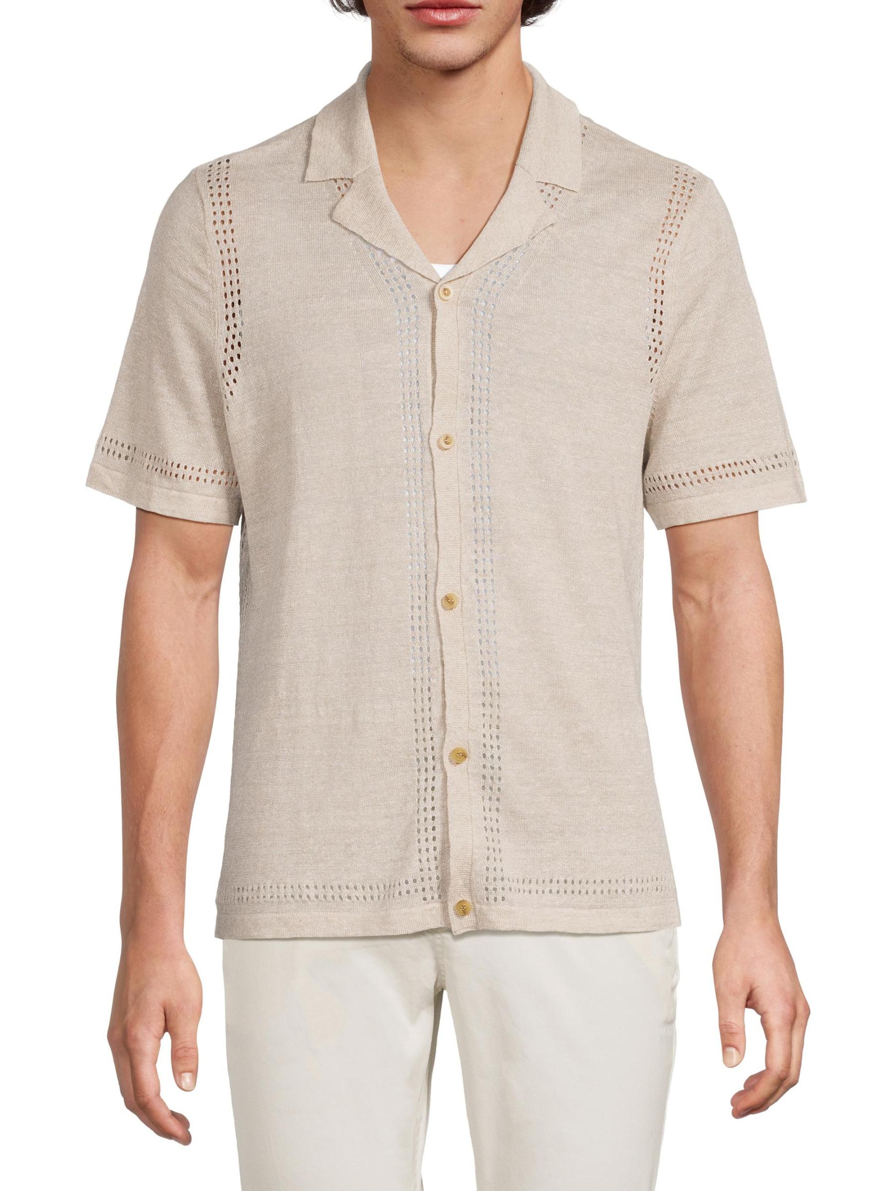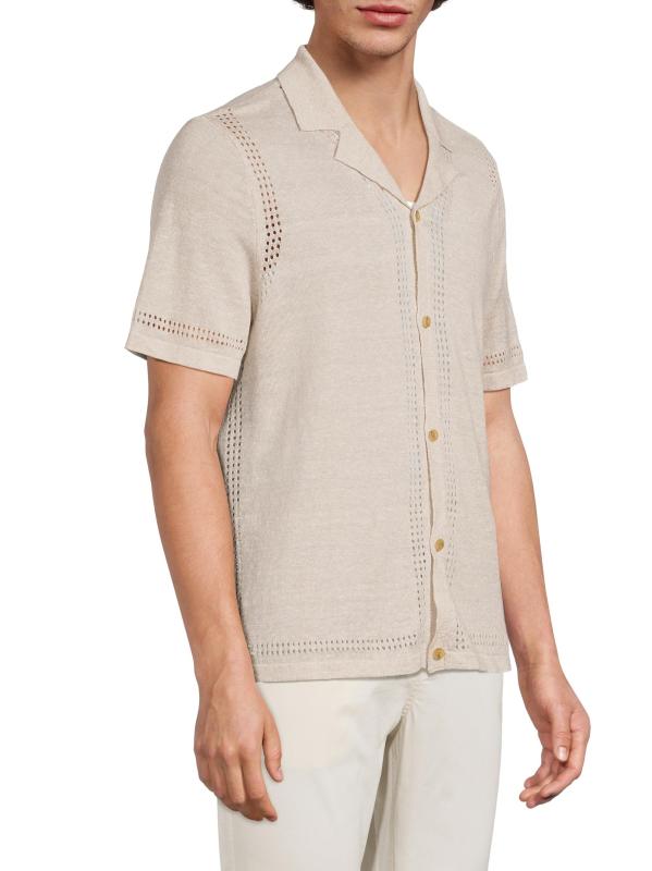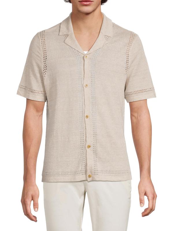 يتميز قميص المخيم هذا من أونيا، المصنوع من الكتان المريح، بمقاس نحيف مع تفاصيل دقيقة.