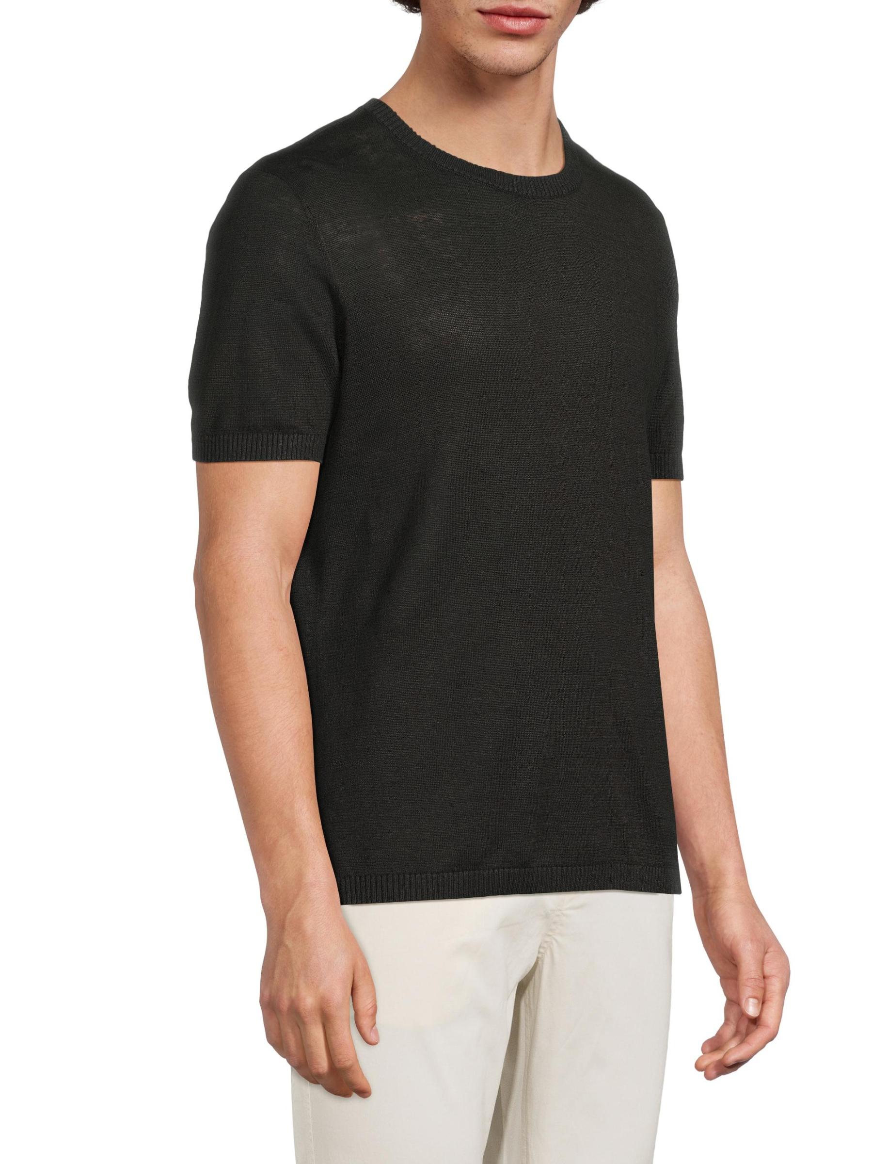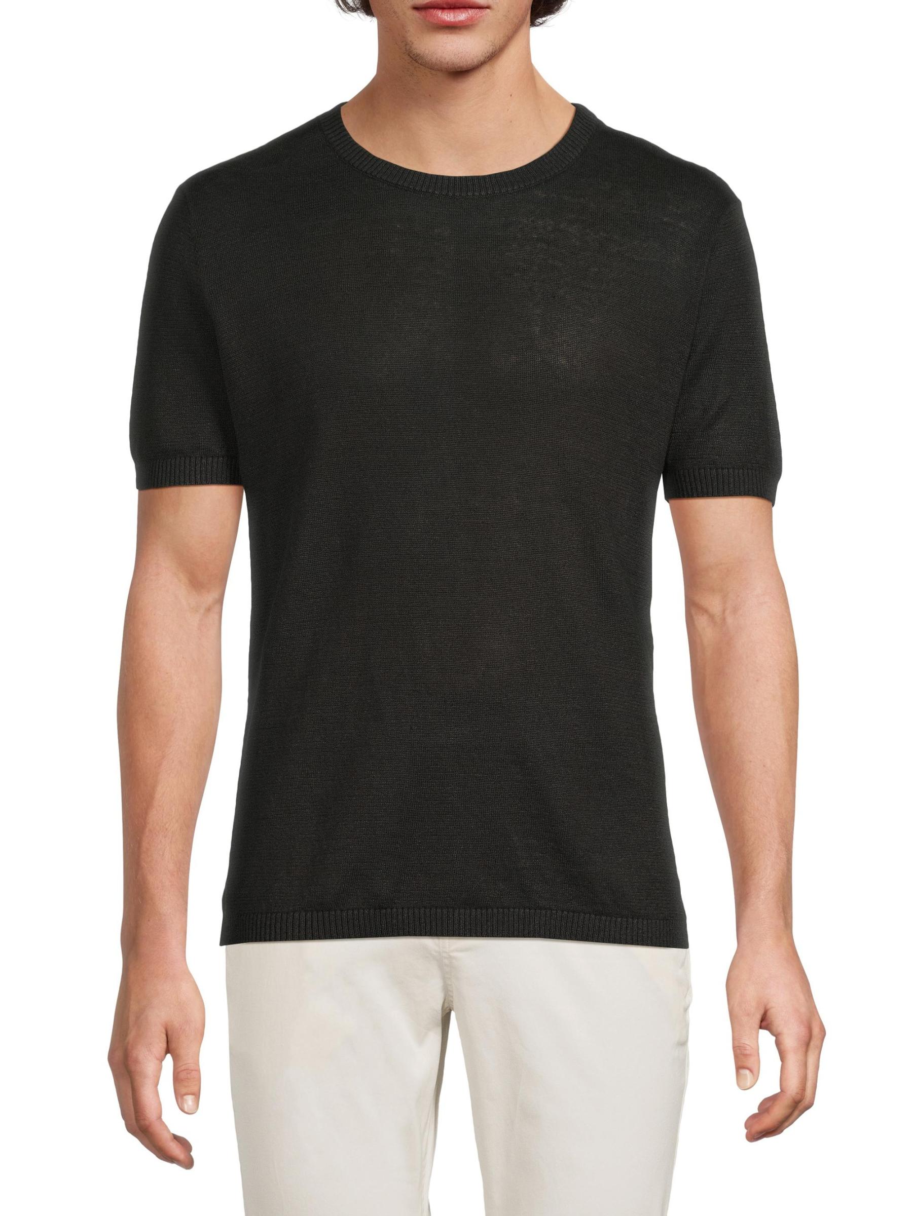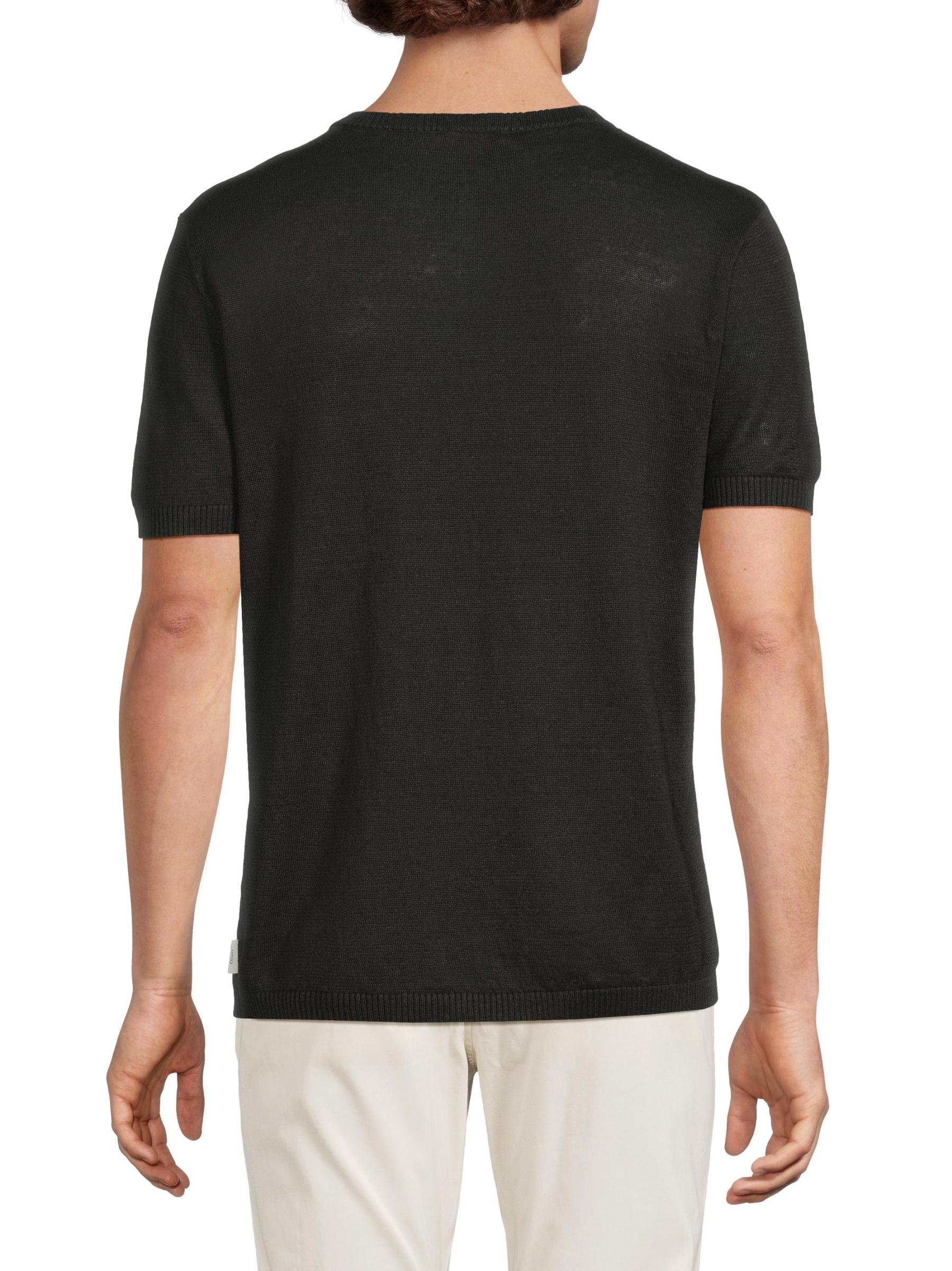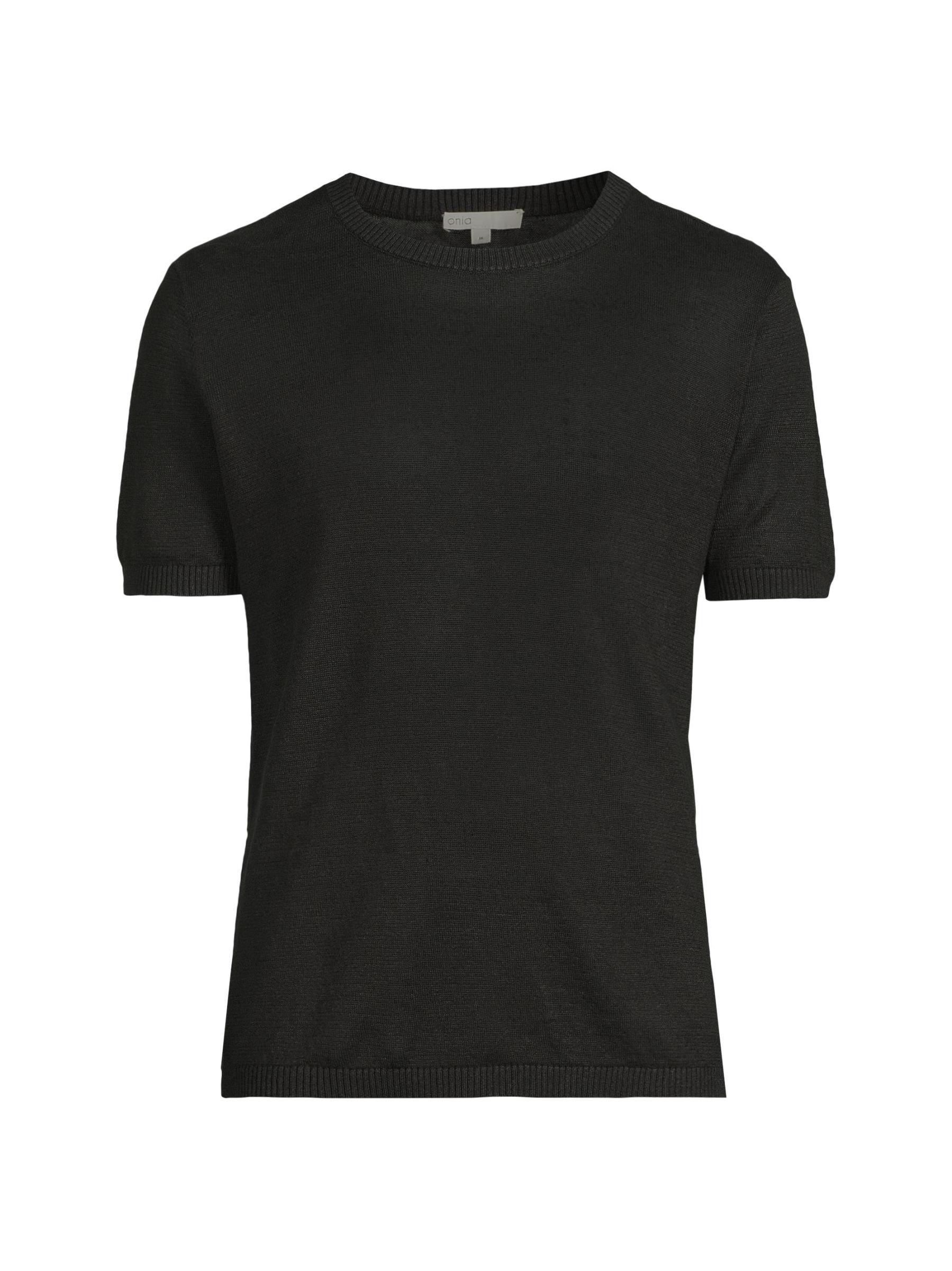 صُنع هذا القميص المحبوك من Onia من الكتان، وهو مصمم بياقة دائرية كلاسيكية وأكمام قصيرة.