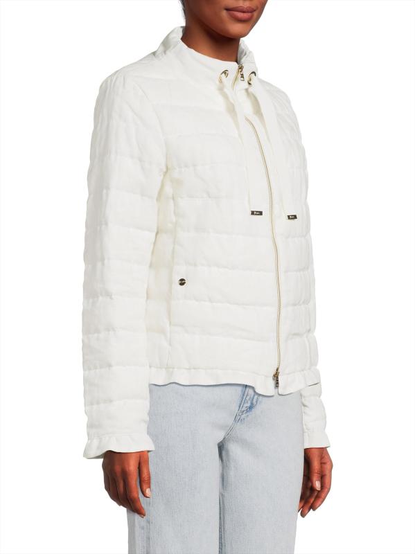 تم تجهيز هذه السترة المصنوعة من الكتان الخفيف من Herno برباط وياقة قائمة وجيبين. تتيح خياطة اللحف ذات العرض الواسع سهولة الحركة بينما توفر العجلة الخفيفة لمسة من الأناقة الرشيقة.