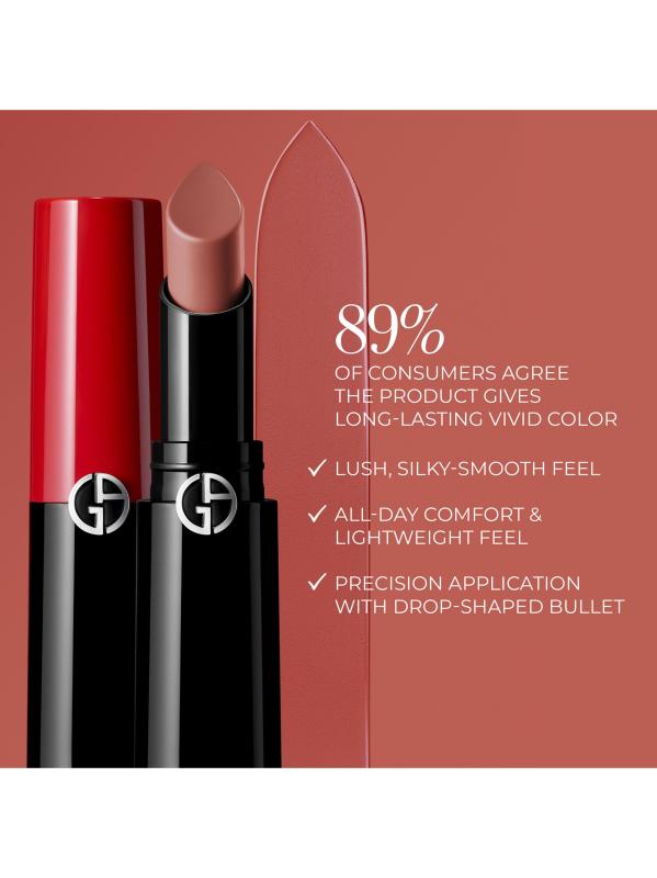أحمر شفاه كريمي طويل الأمد ومصبوغ بقوة ينساب بسلاسة ويحافظ على ترطيب الشفاه طوال اليوم ويمنحك لمسة نهائية حريرية مشرقة. صُنع في فرنسا.