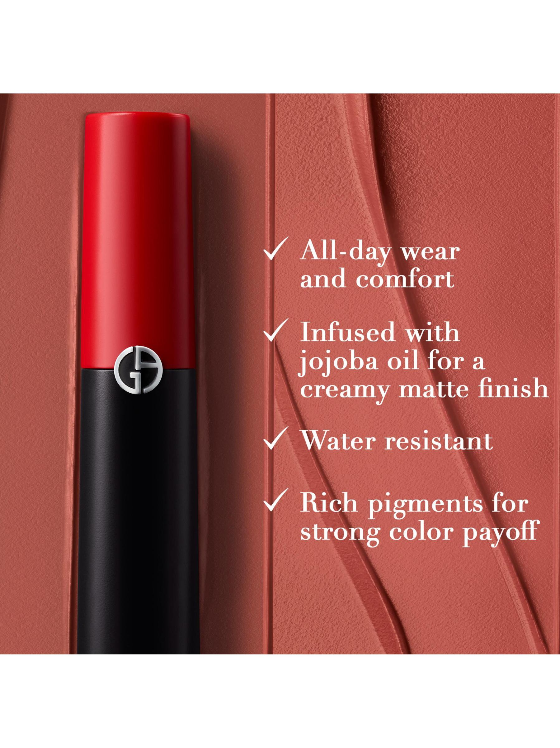 أحمر شفاه مطفي يدوم طويلاً مع أصباغ غنية وتقنية Soft-glide الفريدة التي توفر ترطيب الشفاه والراحة طوال اليوم والتطبيق الكريمي. يوفر أحمر الشفاه هذا لون أحمر شفاه غني بمسحة واحدة. تم تركيبه بمزيج من زيت الزيتون والجوجوبا للترطيب والتجفيف حتى تصبح طبقة نهائية غير لامعة لا تسبب الجفاف. جميع الألوان مصنوعة من صبغة مغلفة لتعزيز التآكل واللون. للتحكم، تساعد الرصاصة على شكل قطرة بعناية في تحديد الشفاه وتشكيلها. 0.10 أونصة. صُنعت في فرنسا.