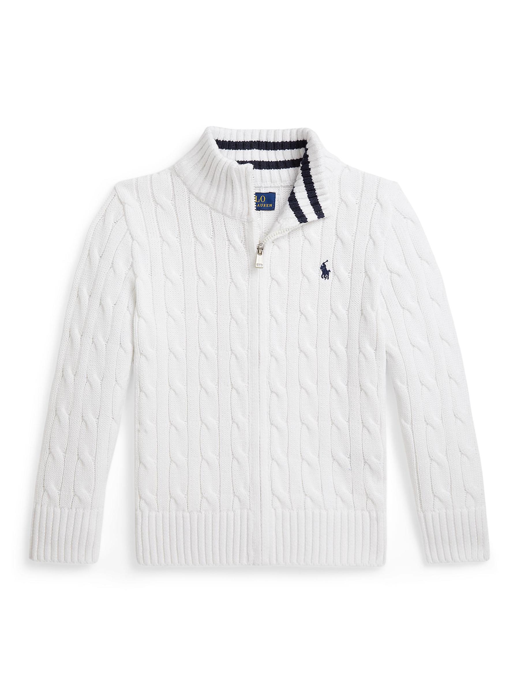 تتميز سترة بولو رالف لورين بسحّاب بتصميم مميز محبوك بالكابلات ومصنوعة من القطن الناعم الممشط.