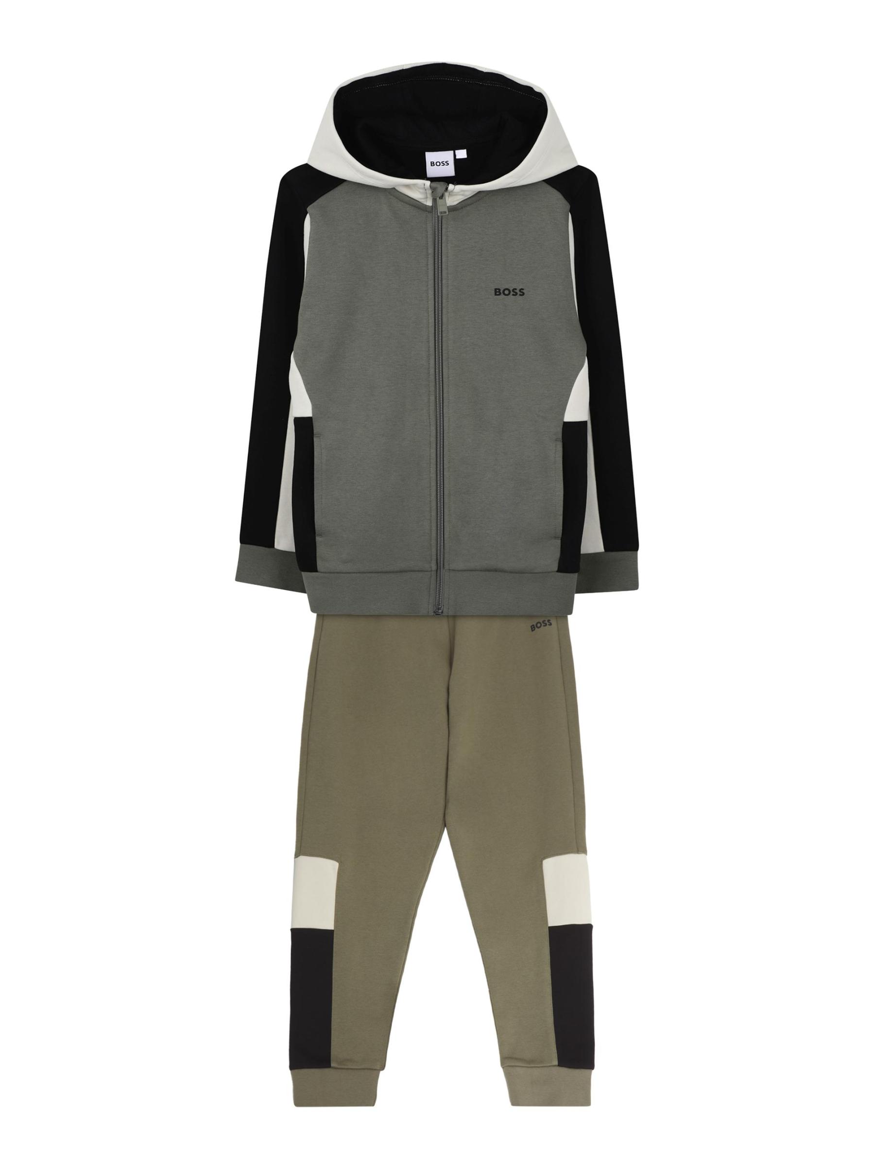 صُمم هذا البنطال الرياضي من BOSS من مزيج القطن والصوف، ويتميز بتصميم متعدد الألوان على الجانبين.