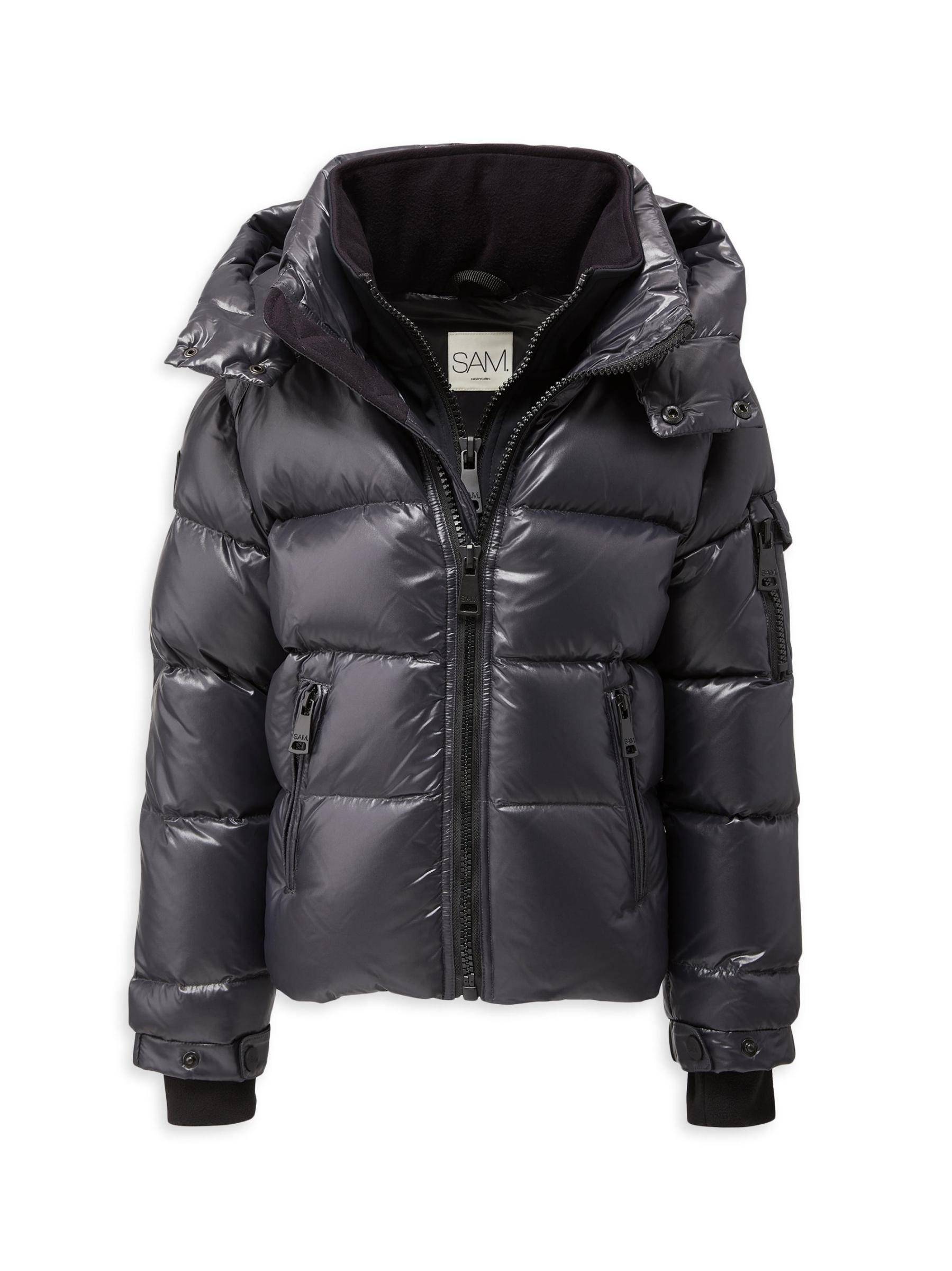 سترة Sam's Glacier down Puffer مصنوعة من النايلون وتتميز بغطاء مرفق مع إغلاق كبس. يُغلق هذا الثوب بسحّاب مركزي ومزين بجيوب بسحّاب وغطاء.