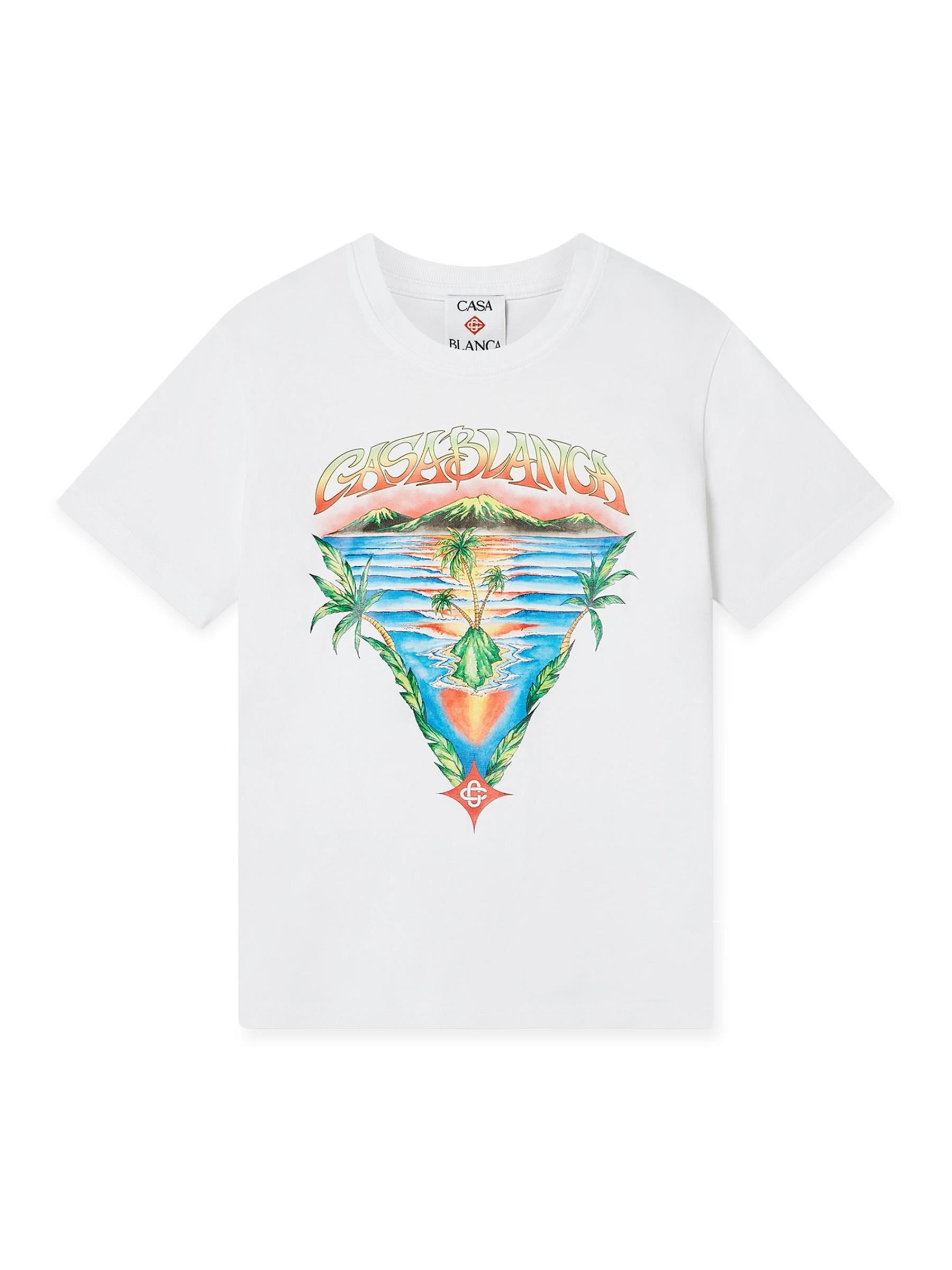 تيشيرت Innocence ذو الرقبة المستديرة من الدار البيضاء مصنوع من الجيرسيه القطني ومزين بزخرفة مثلثة مستوحاة من الجزيرة في الأمام.رقبة مستديرة أكمام قصيرة تسحب قطن بنسبة 100% يُغسل في الغسالة صُنع في البرتغال