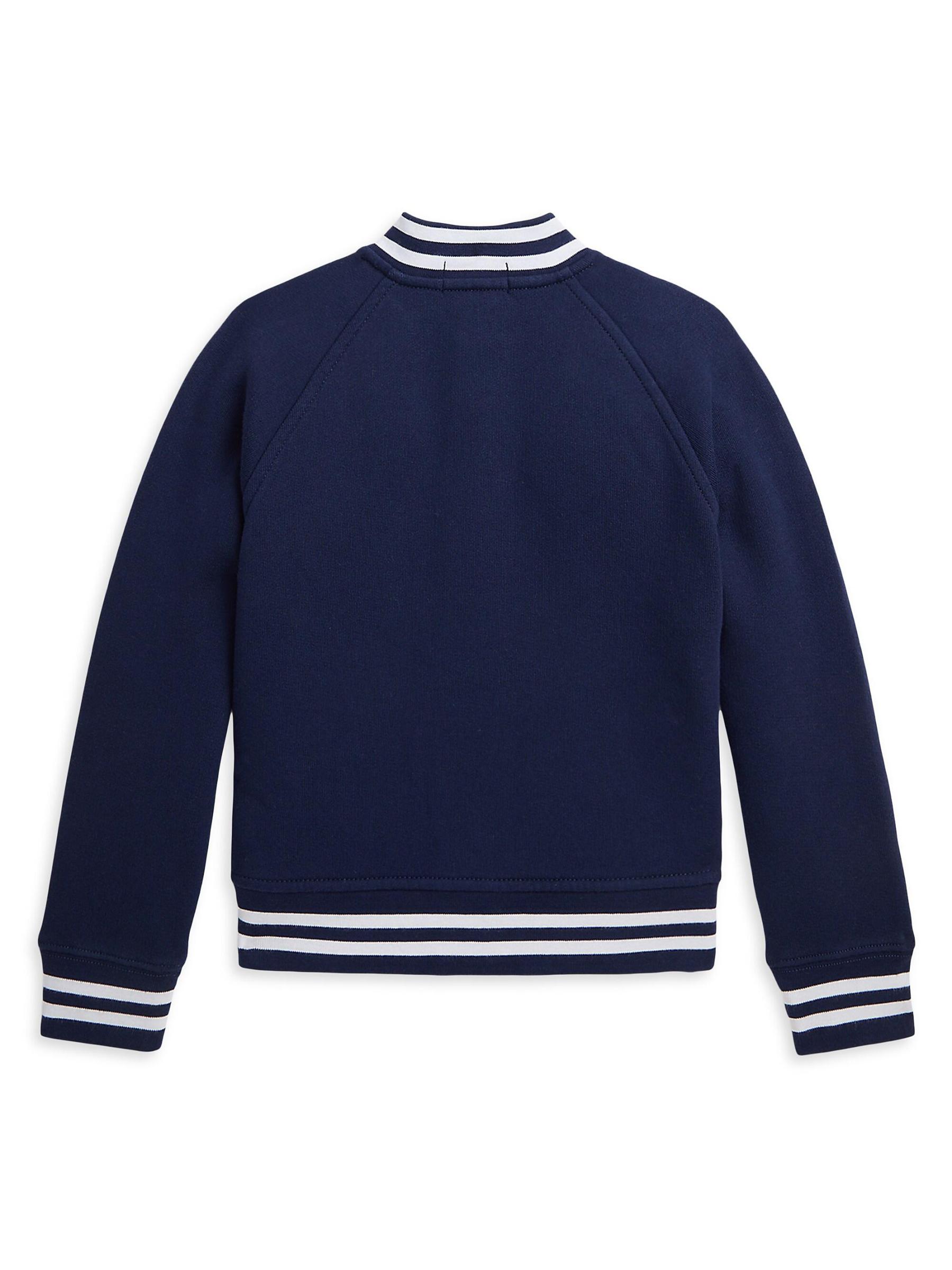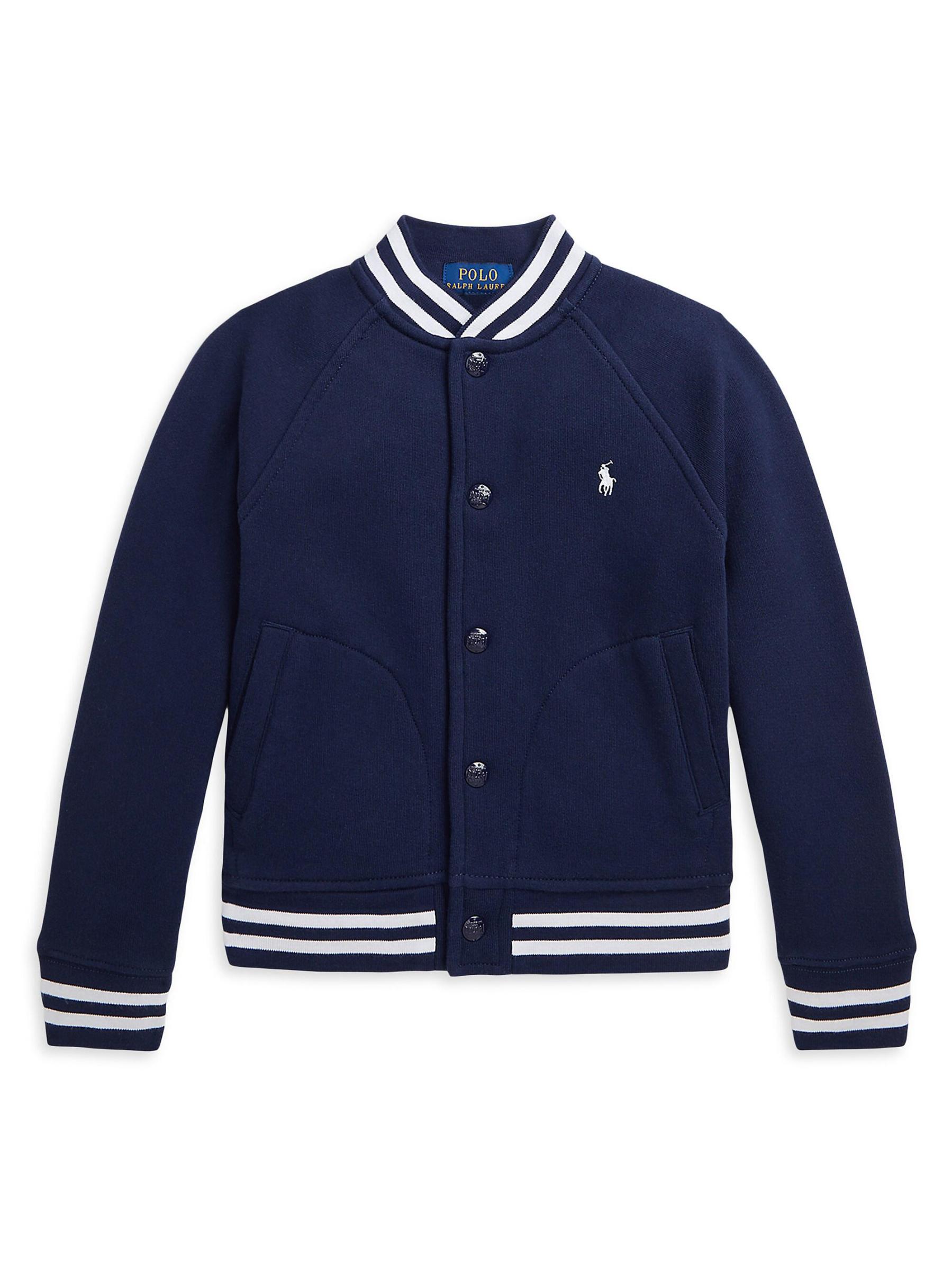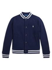 تقدّم بولو رالف لورين جاكيت بومبر رياضي مصنوع من مزيج القطن والصوف، مزيّن بتفاصيل حصان مطرّزة أيقونية للعلامة التجارية. يتميز هذا الطراز بطوق بيسبول مضلع وأساور.