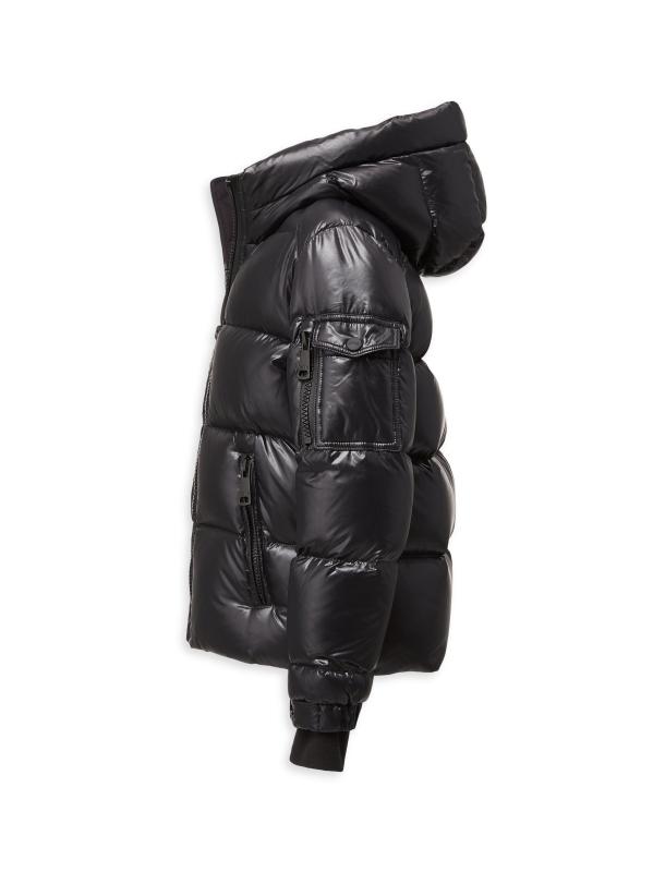 تم تصميم جاكيت Parker down Puffer من Sam من النايلون المطلي بالورنيش ويتميز بثلاثة جيوب مع سحّاب مطفي منقوش بشعار الماركة.
