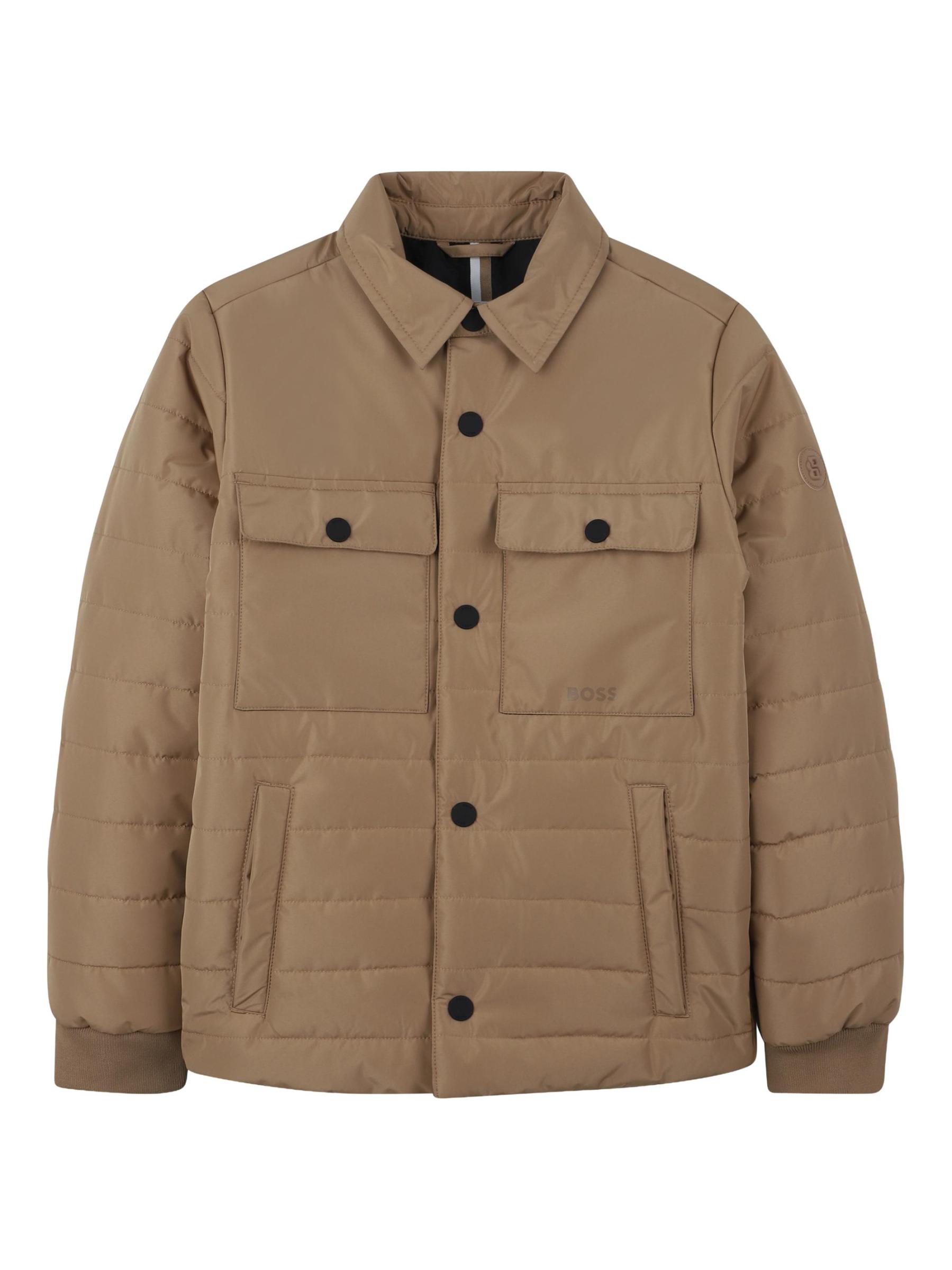 يتميز هذا الجاكيت ذو التصميم الأمامي السريع من BOSS بياقة مدببة وجيبين على الصدر وشارة «B» مزدوجة من السيليكون على الكتف.