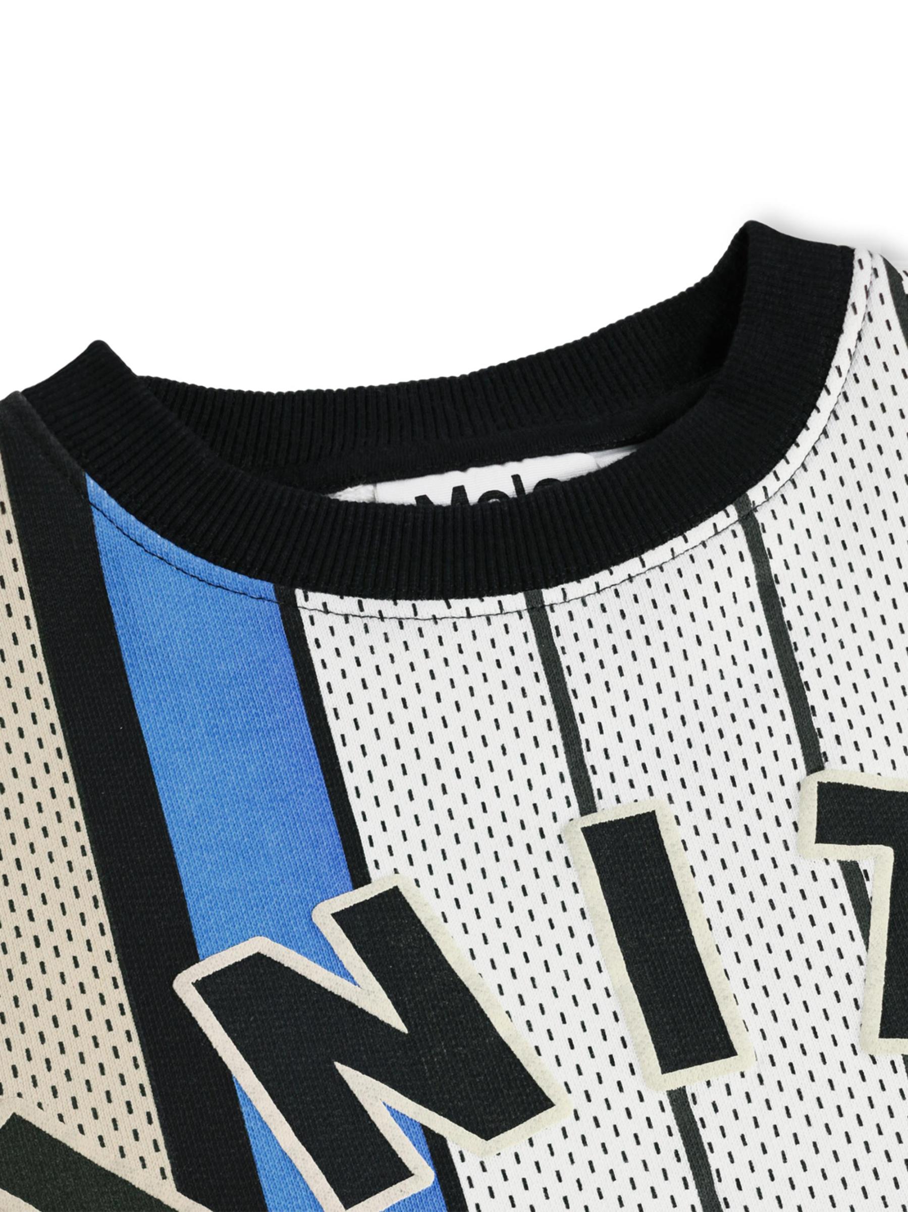 يتميز هذا السويت شيرت ذو الرقبة المستديرة المصنوع من القطن بتصميم مستوحى من قماش الجيرسي وتفاصيل مخططة ومطرّزة بشعار «Unity» على الجهة الأمامية.