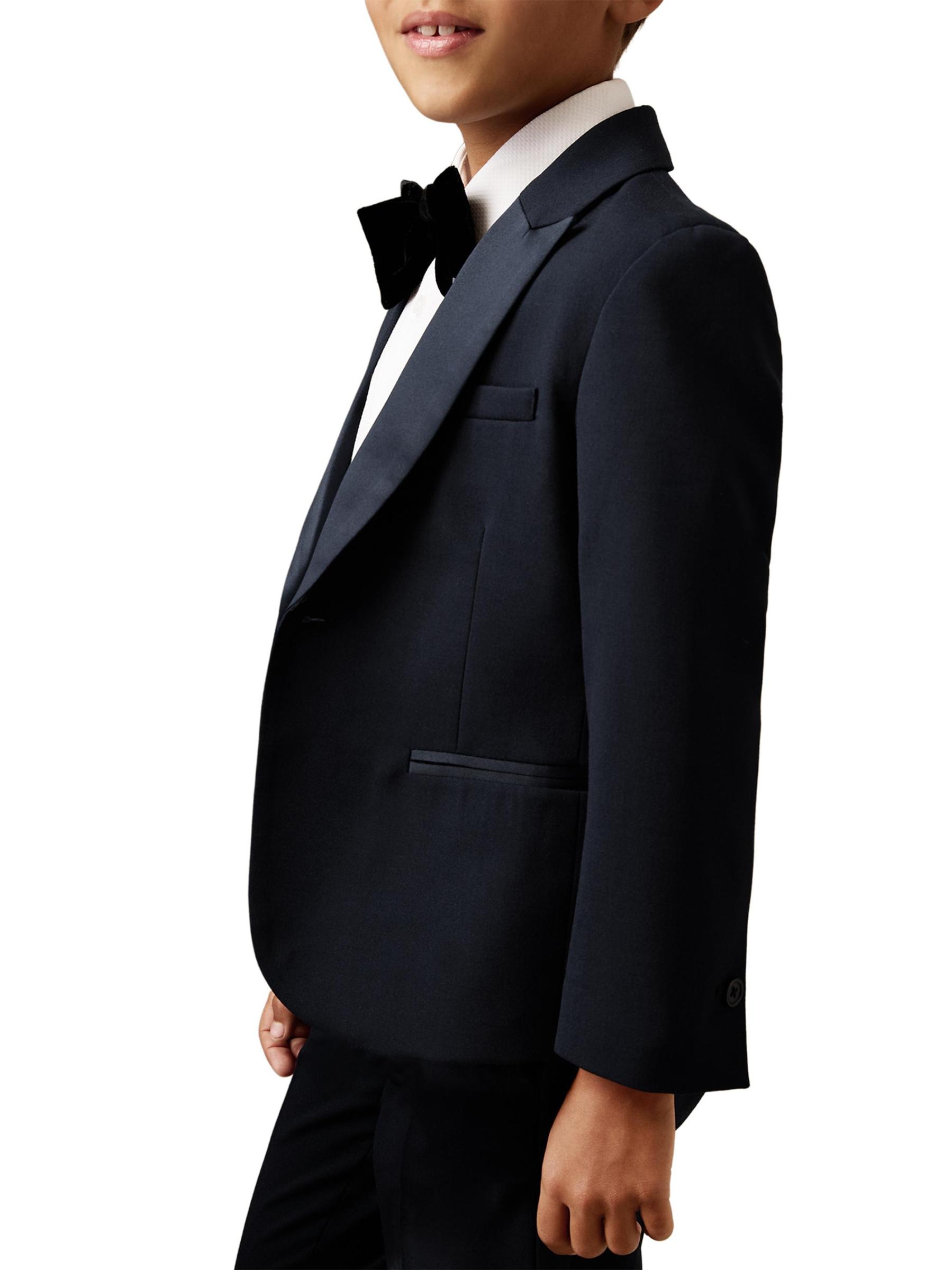 تتميّز هذه السترة أحادية الصدر من Reiss، المصنوعة من مزيج الصوف، بثنيات صدر عالية من الساتان وجيوب مبطّنة بالساتان.