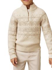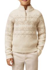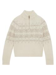 صُنعت سترة كلاوس ذات السحّاب بنصف سحّاب من Reiss من مزيج الصوف، وتتميز بنمط محبوك على طراز Fair Isle وأجزاء صلبة ذهبية اللون.