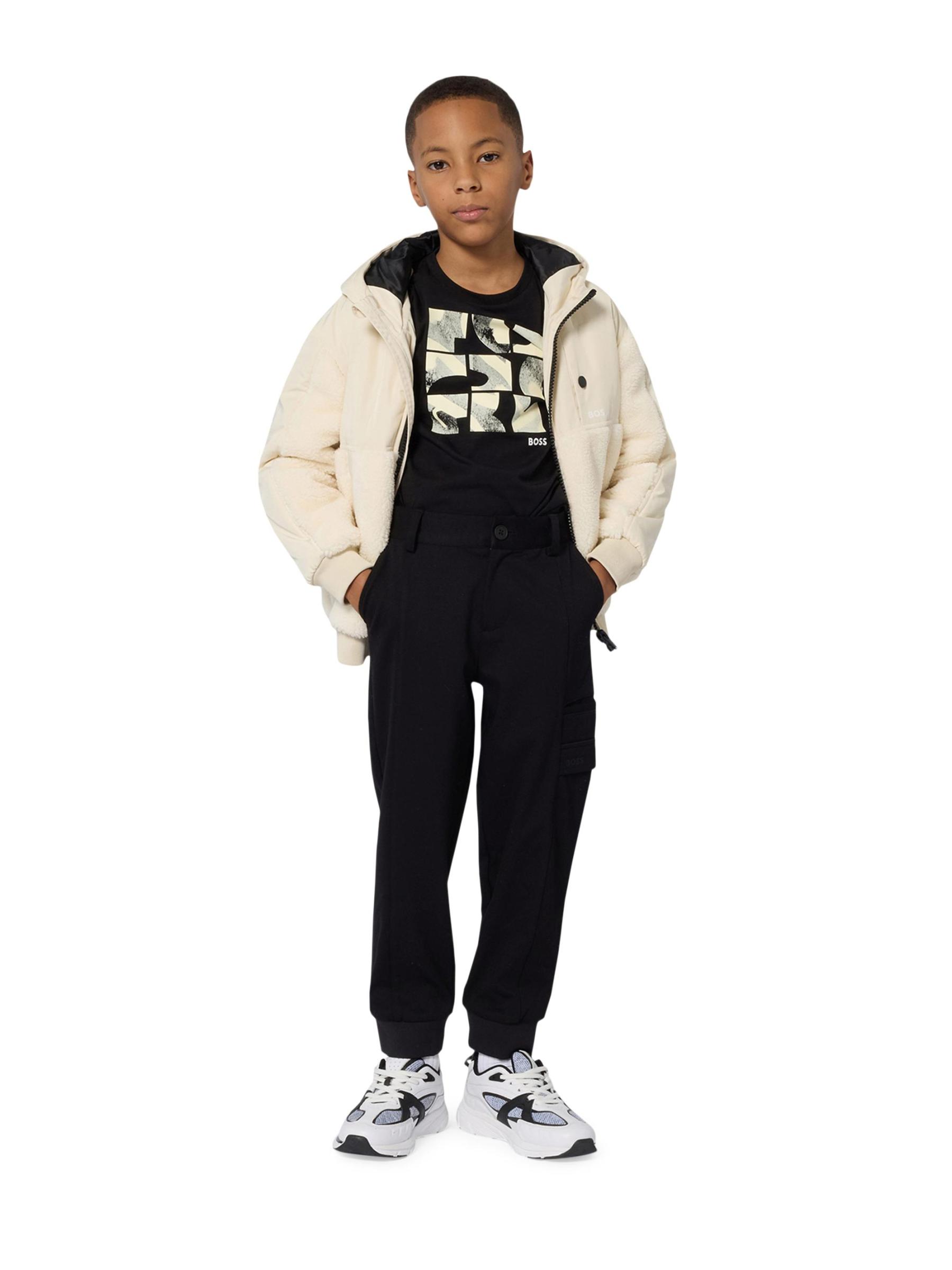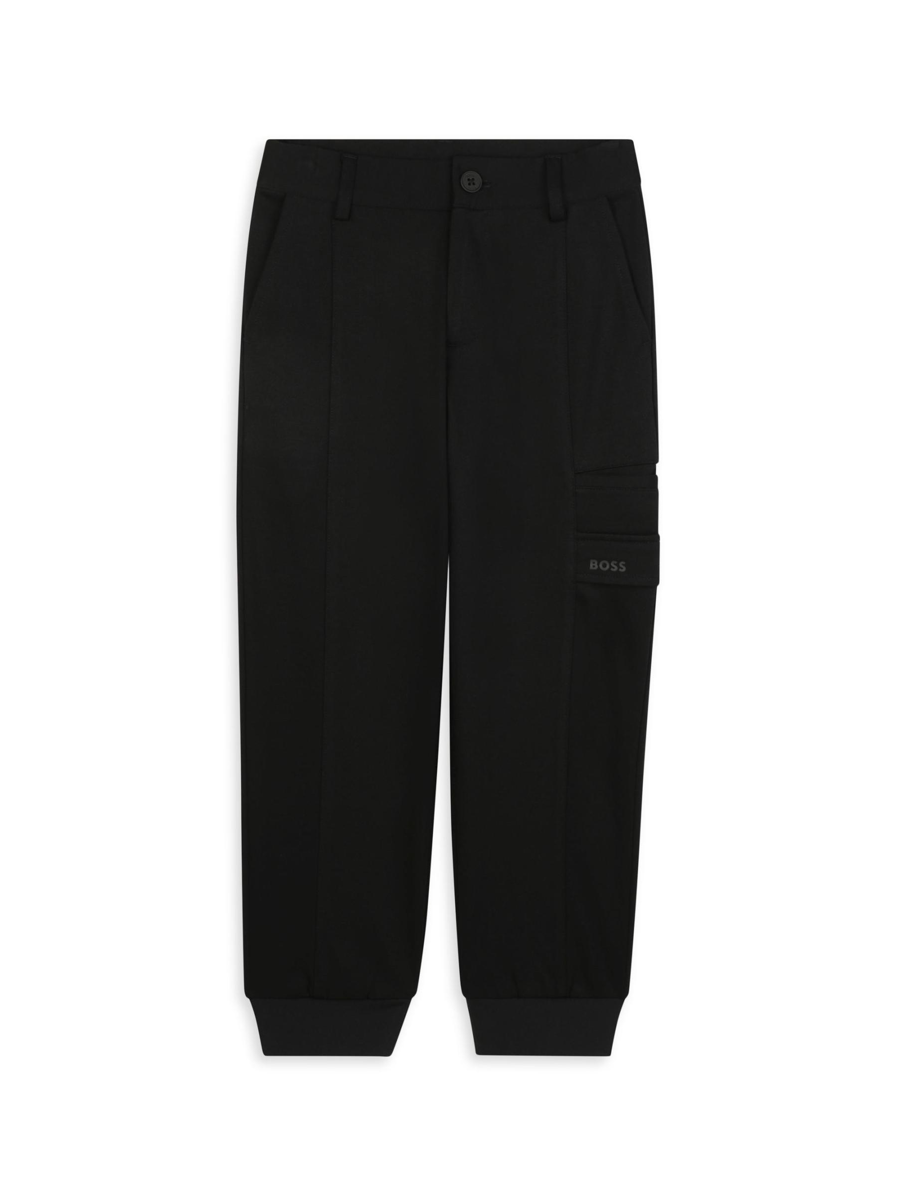 يتميز هذا البنطال الرياضي المصنوع من بيكيه من BOSS بجيبين مفتوحين في الخلف وجيب بغطاء على الجانب مع شعار مطبوع.