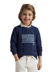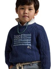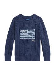 تتميز سترة بولو رالف لورين ذات الرقبة المستديرة بالعلم الأيقوني المرفوع بمجموعة من الأنماط المحبوكة والعناصر المطرزة يدويًا وتفاصيل خياطة السوط.رقبة مستديرة أكمام طويلة تسحب قطن يُغسل في الغسالة مستوردة