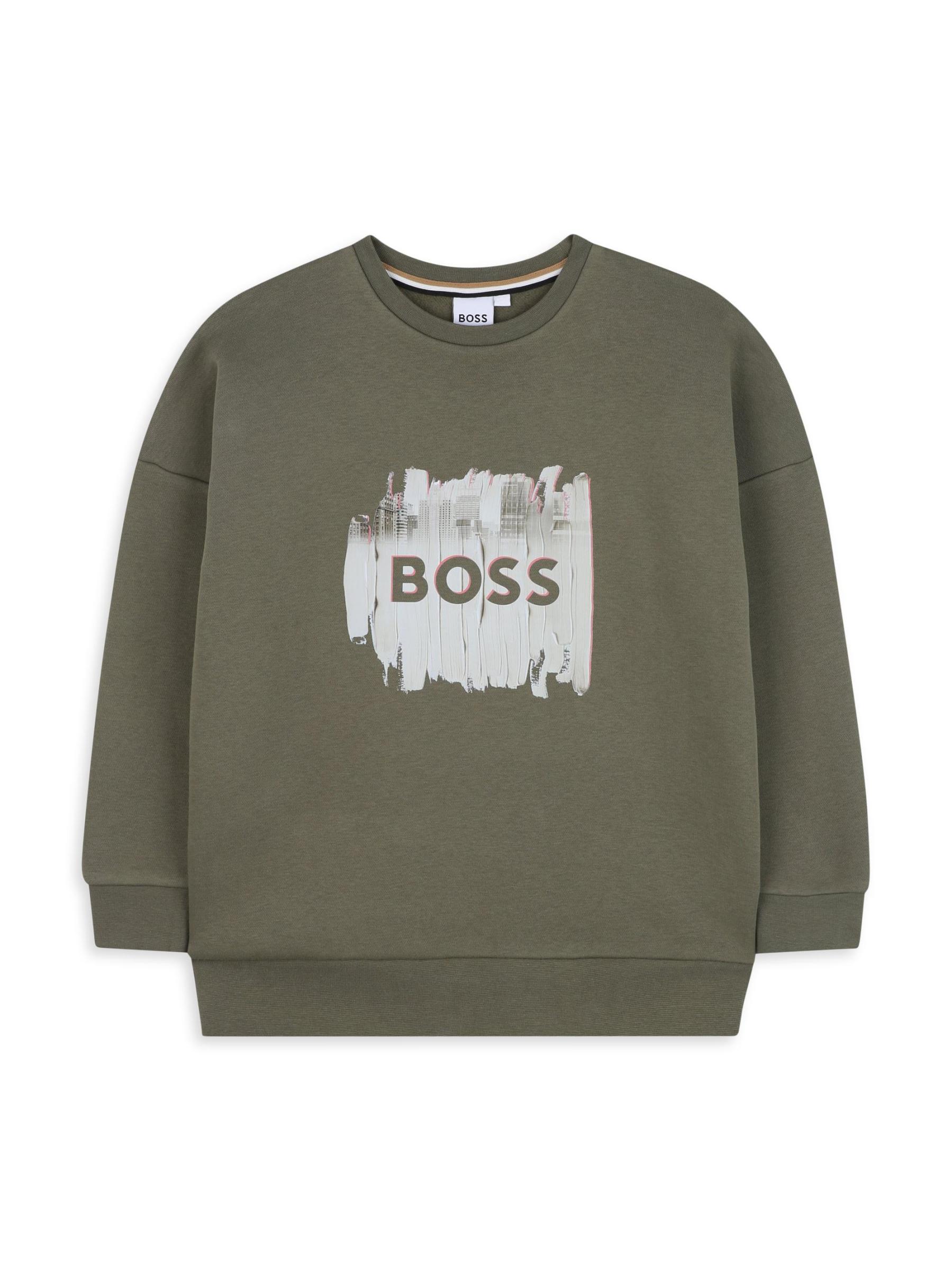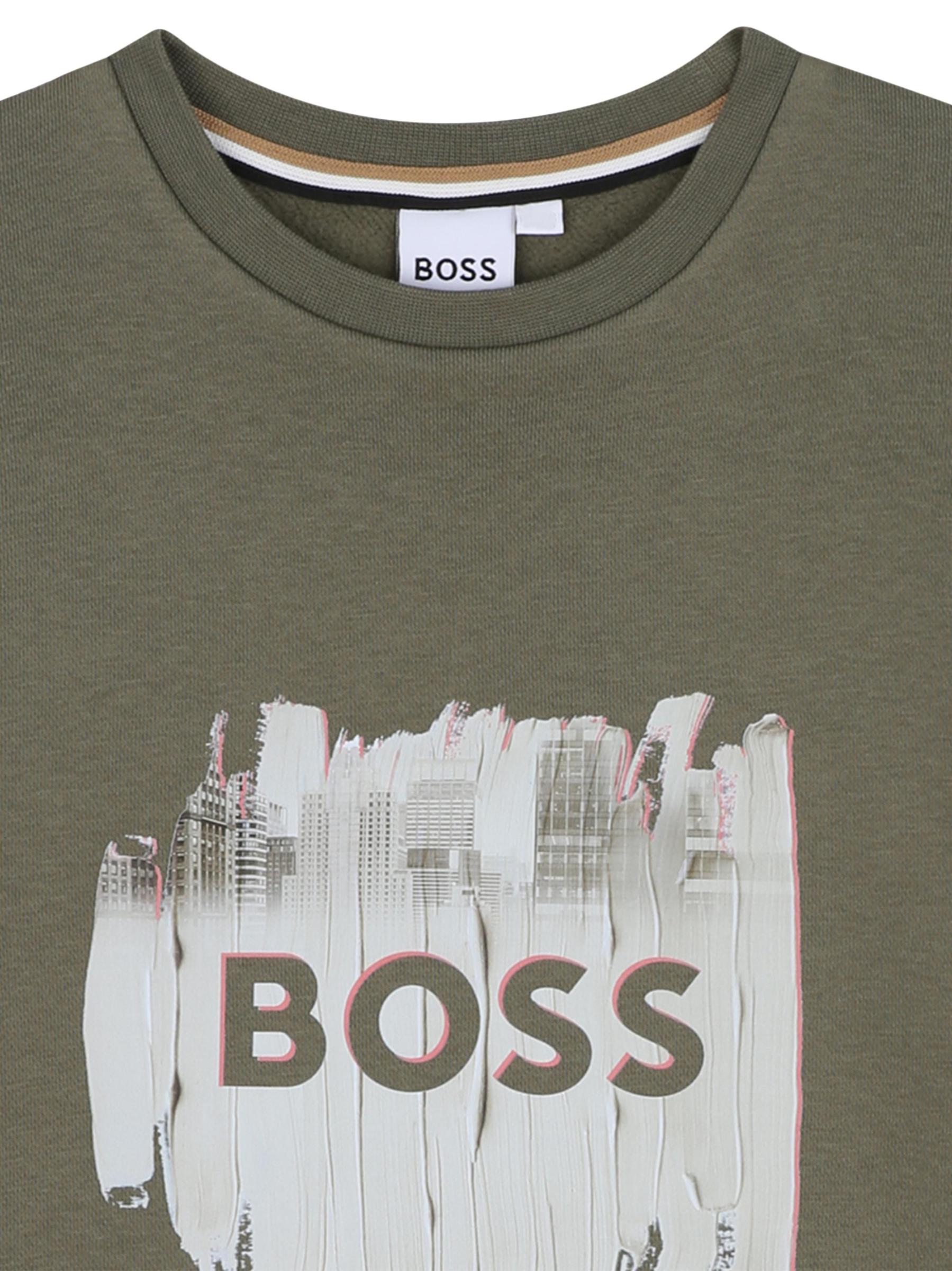هذا السويت شيرت ذو الرقبة المستديرة مصنوع من مزيج القطن والصوف المصقول الذي يتميز بشعار BOSS المطبوع على الجهة الأمامية.