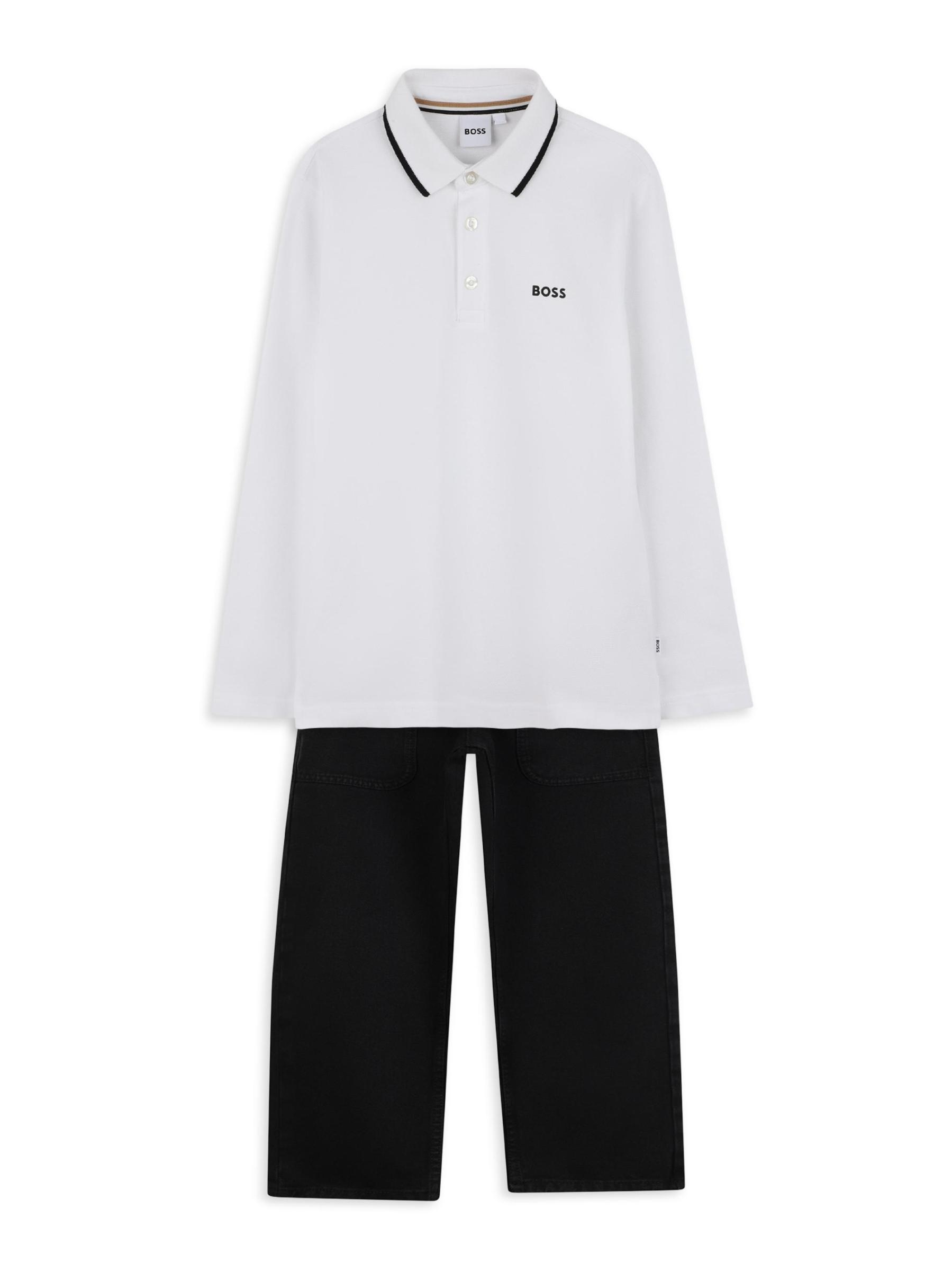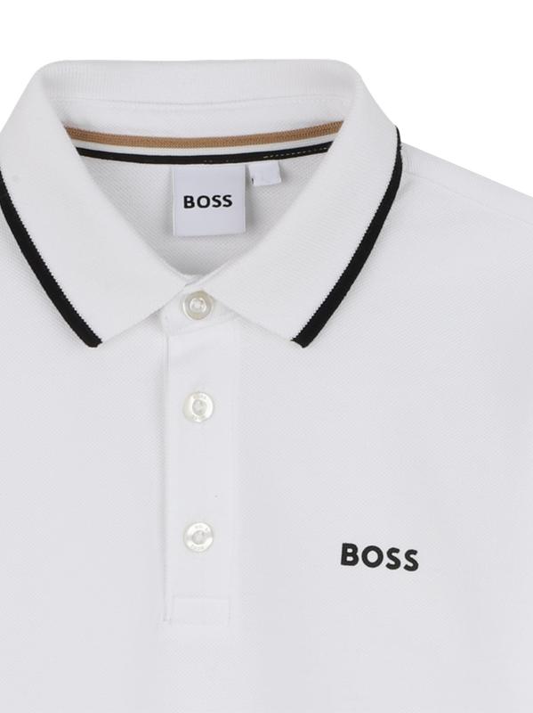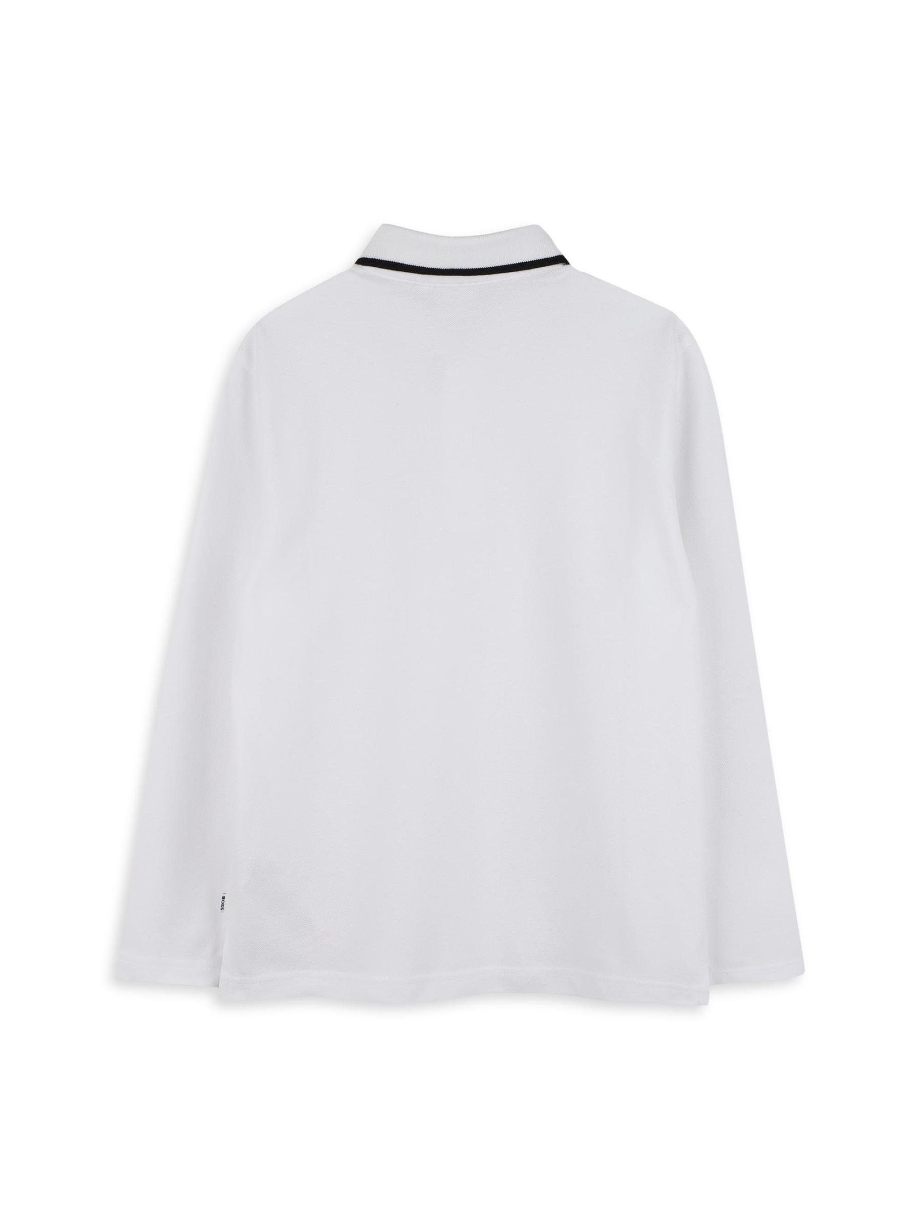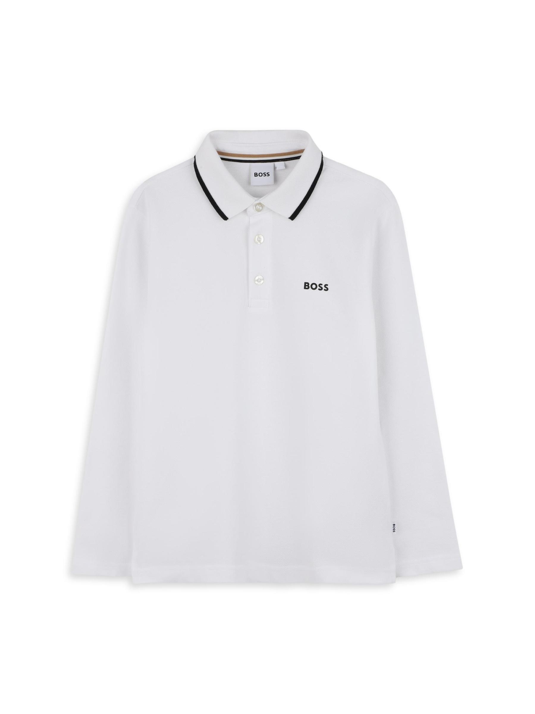 يتميز قميص بولو بأكمام طويلة هذا المصنوع من القطن بزخرفة متباينة عند الياقة وشعار BOSS مطبوع على الصدر.