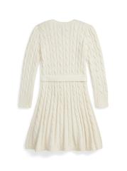 صُمم هذا الفستان ذو الرقبة المستديرة من بولو رالف لورين بتصميم على شكل حرف A من القطن المحبوك بالكابلات ويتميز بحزام لوني.