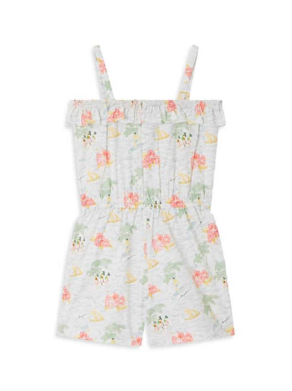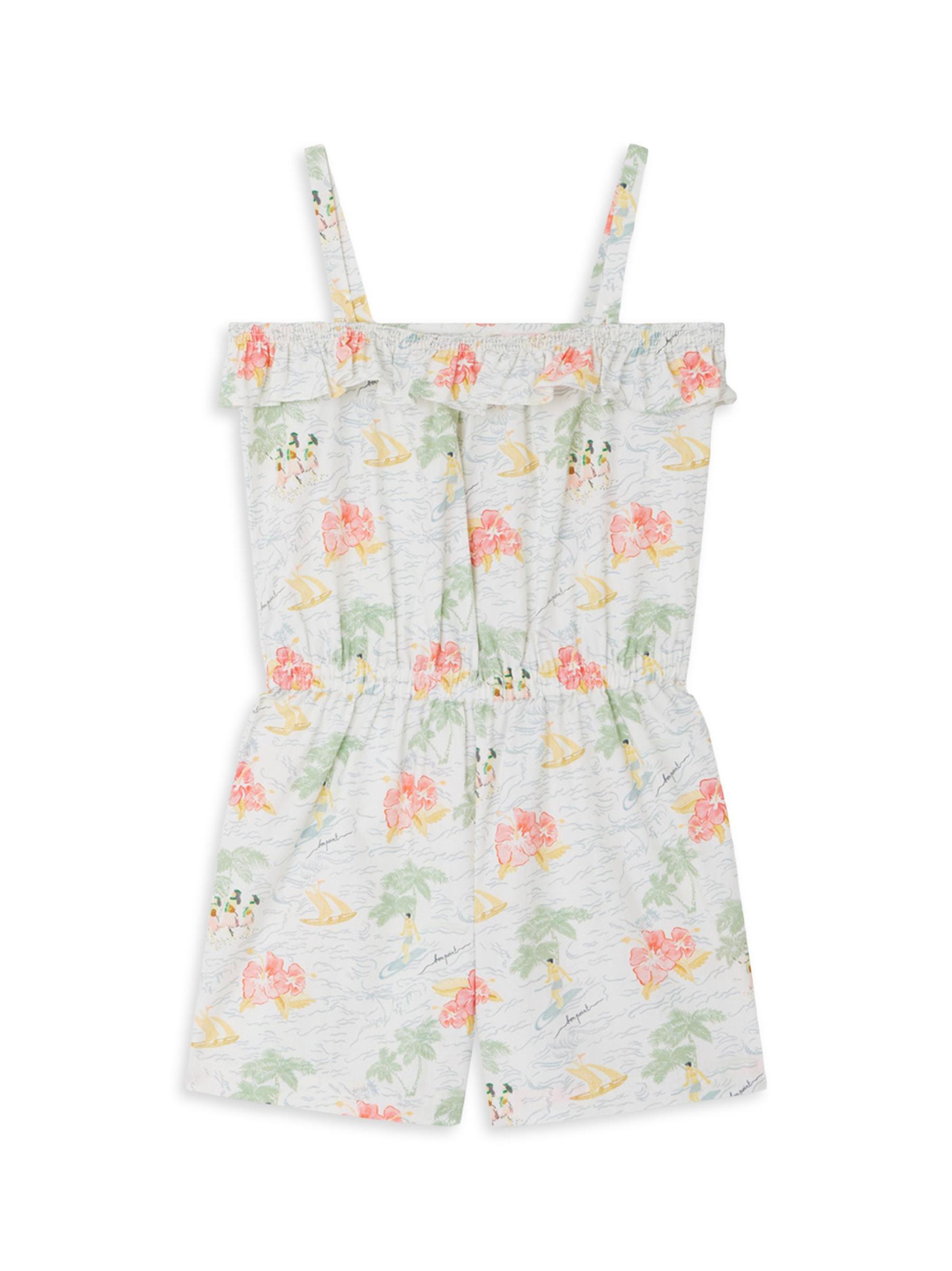 من مجموعة كروز. يتميز رومبير Agrume من Bonpoint المصنوع من القطن بتصميم كلاسيكي برقبة مستقيمة مع طباعة الأمواج الاستوائية الملونة.