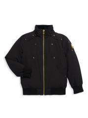 تتميز سترة Moose Knuckles ذات التصميم البومبر الكلاسيكي بغطاء رأس مزيّن بالشيرلينغ.